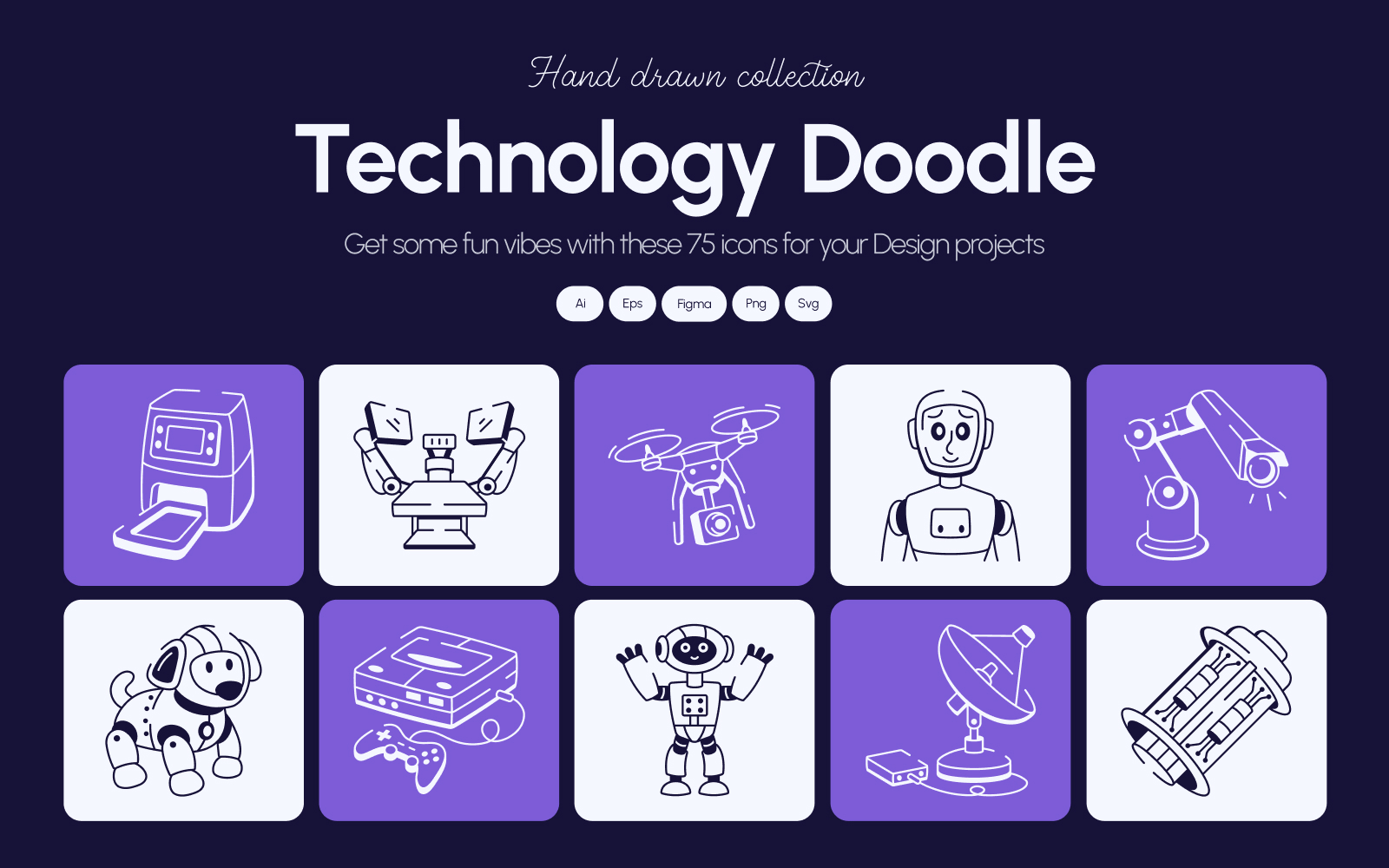 Add a playful spark to your digital projects with this Technology Doodle Icon Set! These hand drawn icons are perfect for websites, apps, infographics, lesson materials, or tech-themed merchandise. This set is easy to use across print and digital media. Whether you're designing for education, health, home tech, or even space tech, these doodles bring a fun, human touch to modern design.