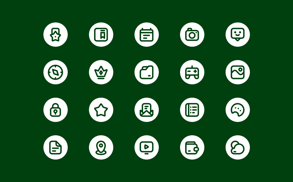 User interface icons are icons that can be used for interface displays, visuals, UI kits, front-ends, and more. Icons include music, folders, documents, games, locations, compasses, keys, and more, all of which you can use in your designs.
