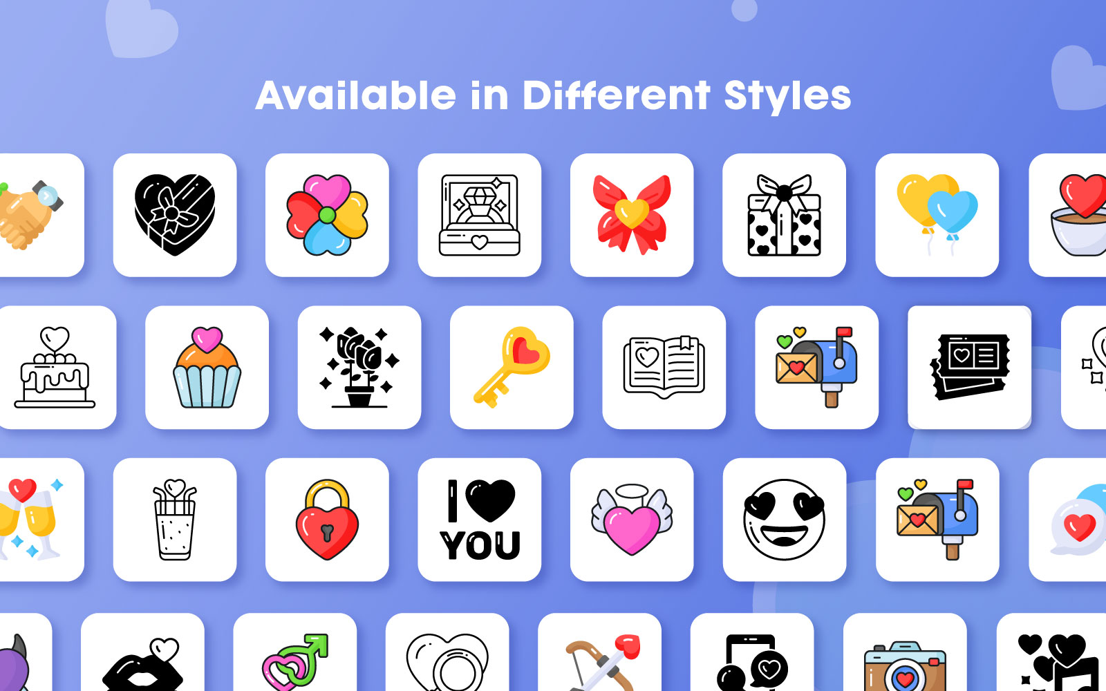 A collection of Valentine's Day icons. "Unleash the language of love with our Valentine's Day Icons Pack! This pack adds sweetness to your Valentine's Day social media, and creative projects.