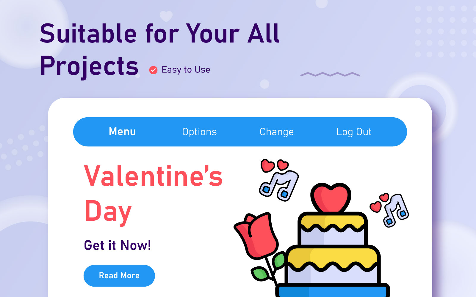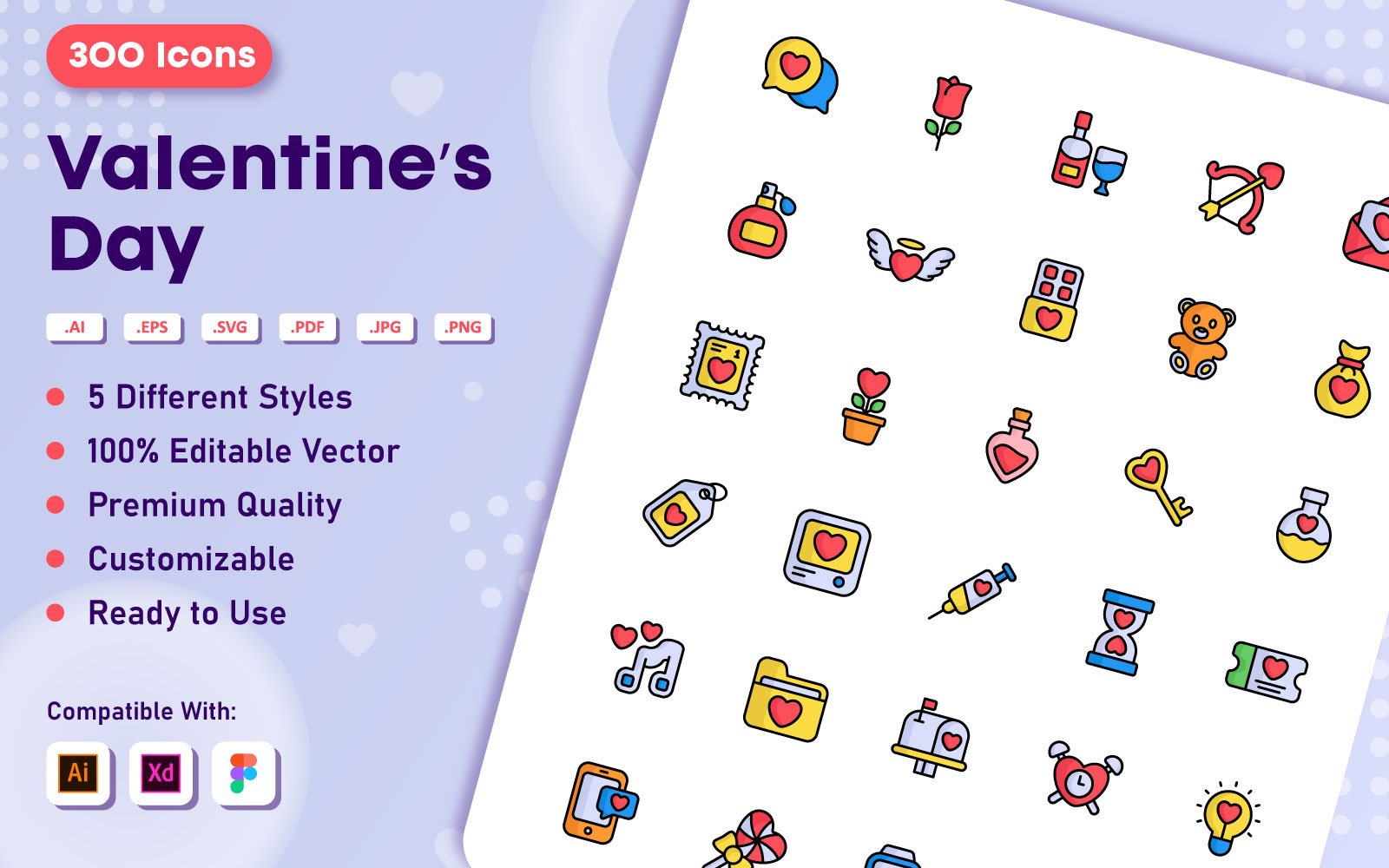 A collection of Valentine's Day icons. "Unleash the language of love with our Valentine's Day Icons Pack! This pack adds sweetness to your Valentine's Day social media, and creative projects.