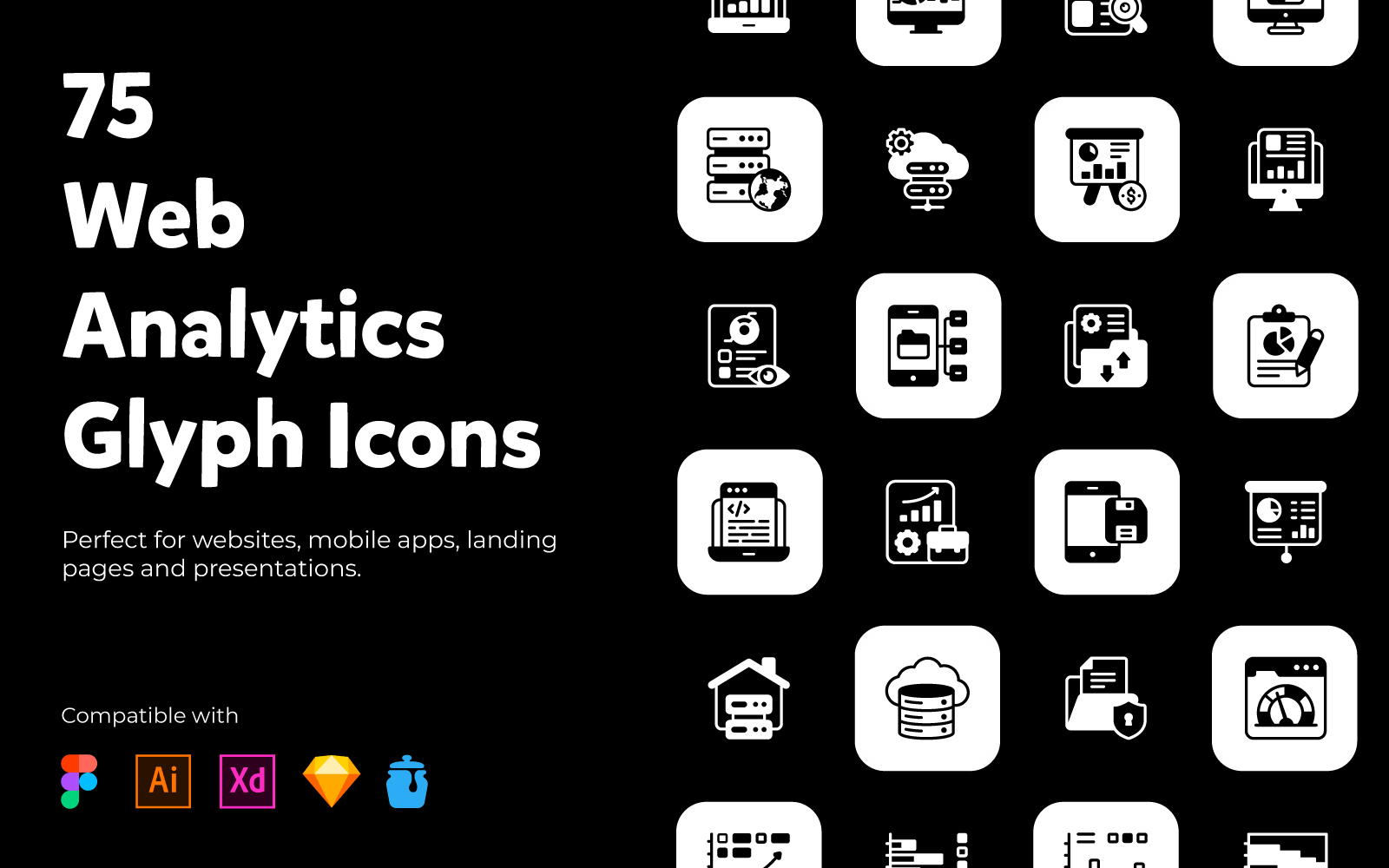 A perfect pack of web analytics has some eye-catching visuals related to web development, website data and so on. Solid icons have trend based designs which are super useful in related web and app projects.