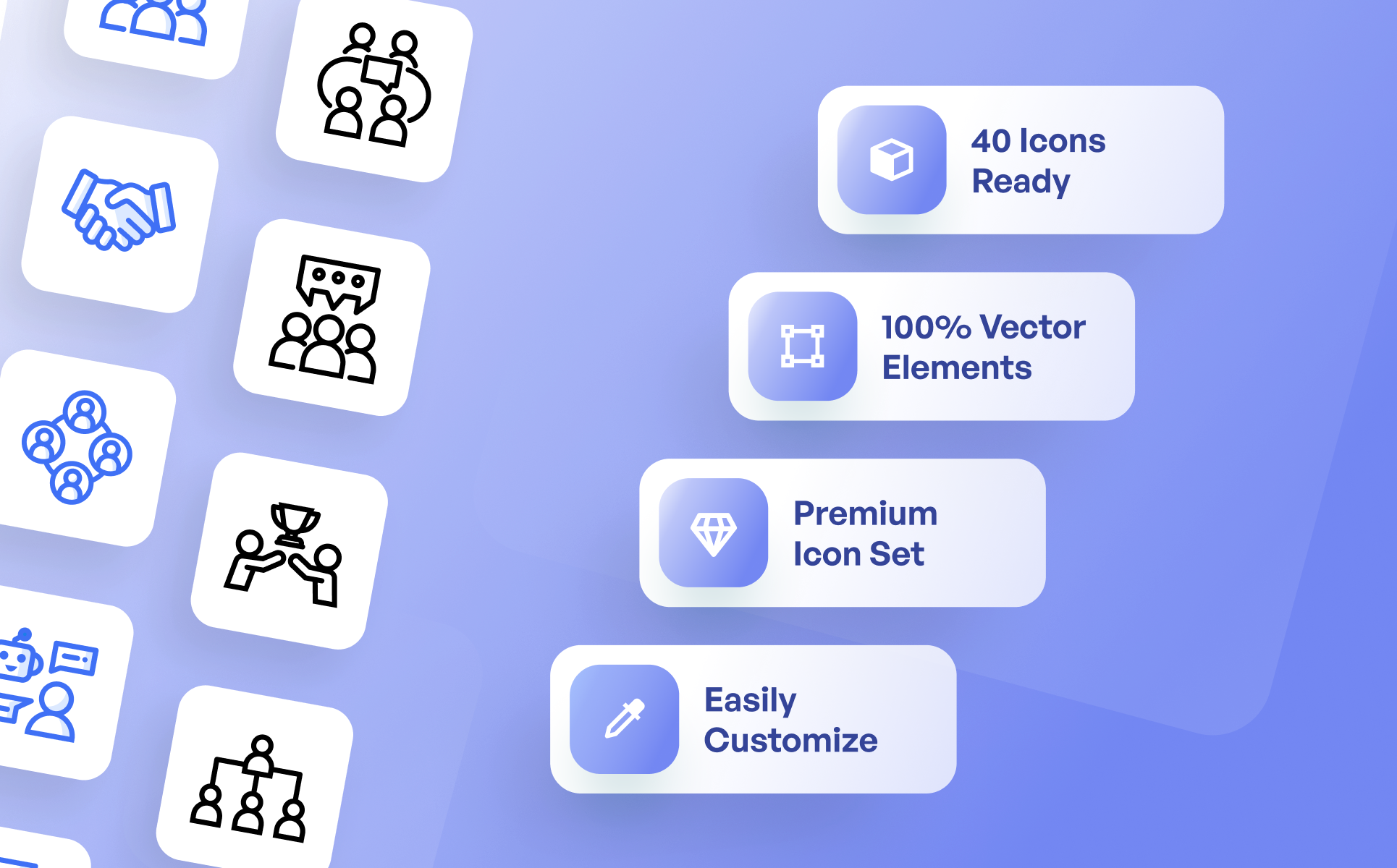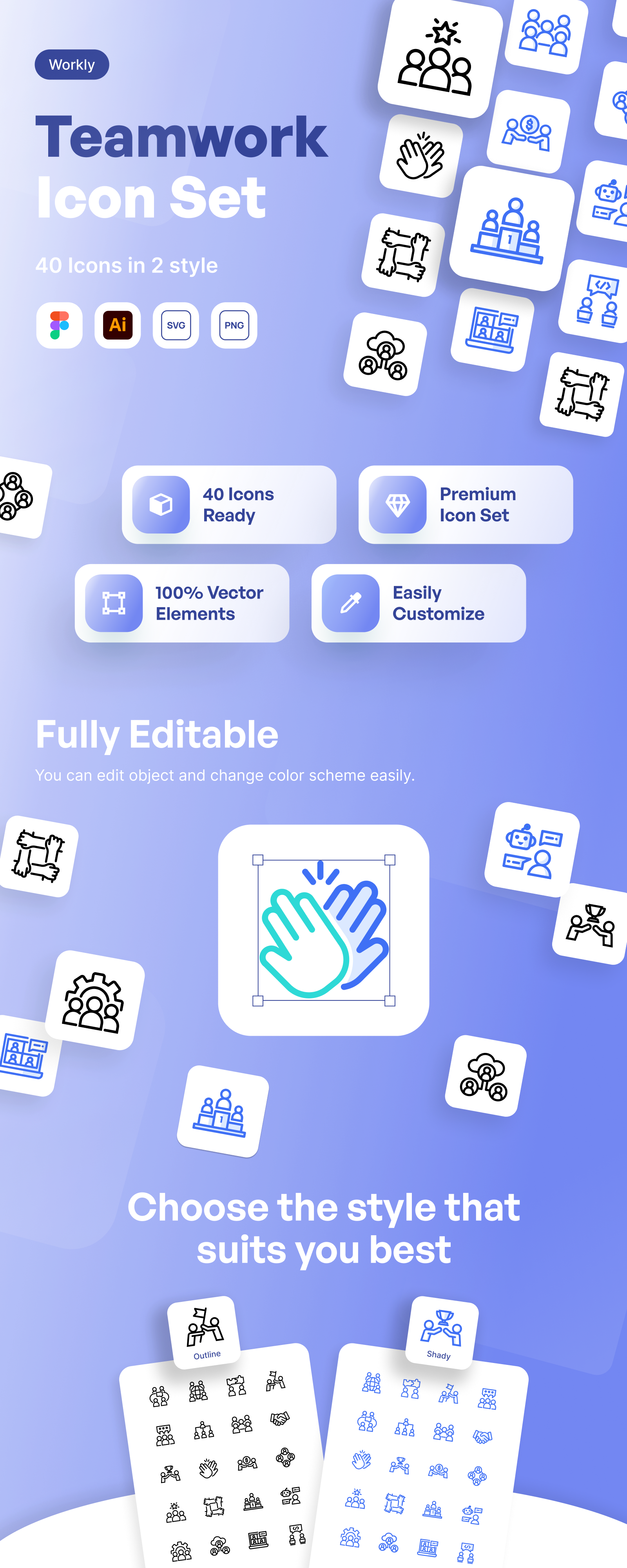Workly is a pack of custom icons with various Work, Unity and Teamwork niches. Objects are easy to edit and ready to use for your needs. Make your next product and project more stunning with Workly.