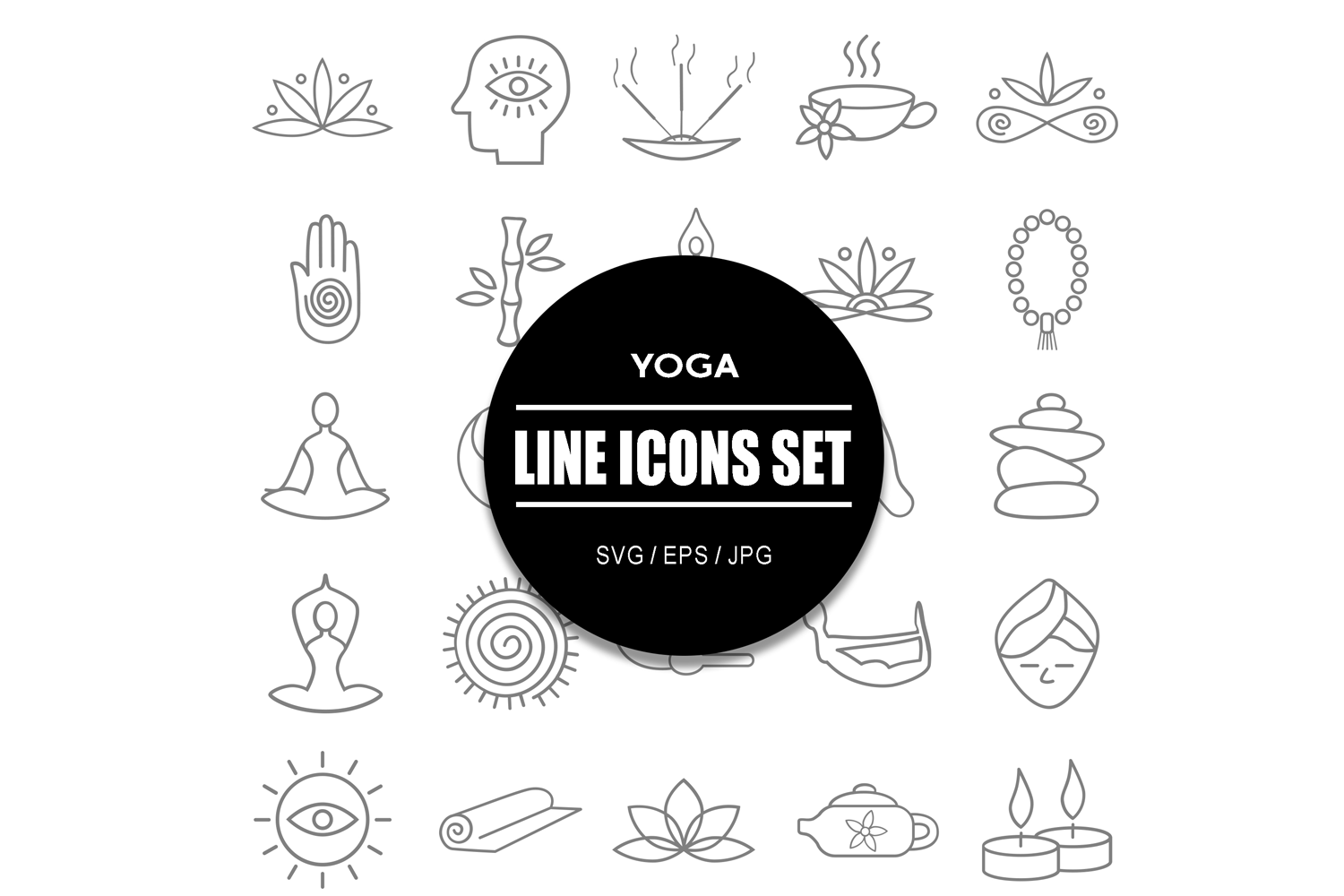 This yoga and meditation icon featuring a collection of beautifully crafted icons, this set includes everything you need to create a calming and mindful atmosphere. This bundle includes a full set of high-resolution icons that feature various yoga poses, meditation symbols, and spiritual images.