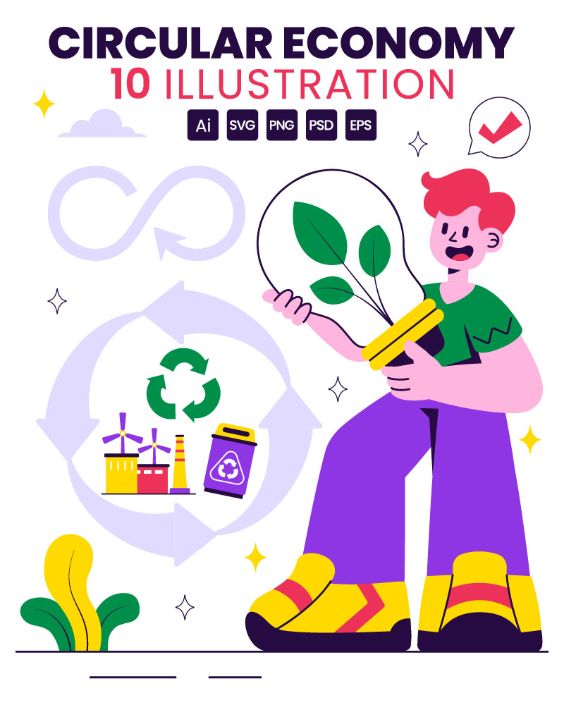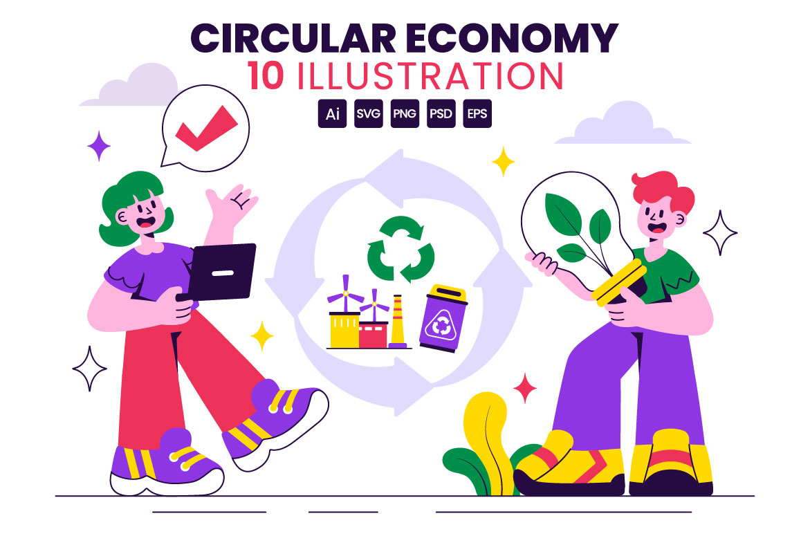 Circular Economy Vector Illustration to Maintain the Value of Products, Raw Materials and Resources by Eliminating Waste and Pollution in a Background Suitable for Poster, Web Banner, Brochure, Landing Page and Others Background Template Features:
