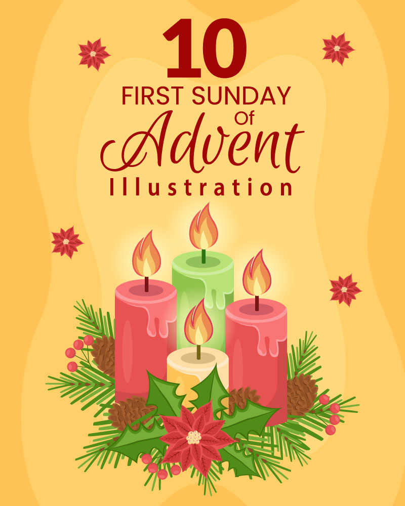 First Sunday of Advent or the Beginning of a New Church Year Which Takes Place on November 27 in Template Hand Drawn Cartoon Flat Background Illustration Suitable for Poster, Banner, Cover, Brochure and Other Template Features: