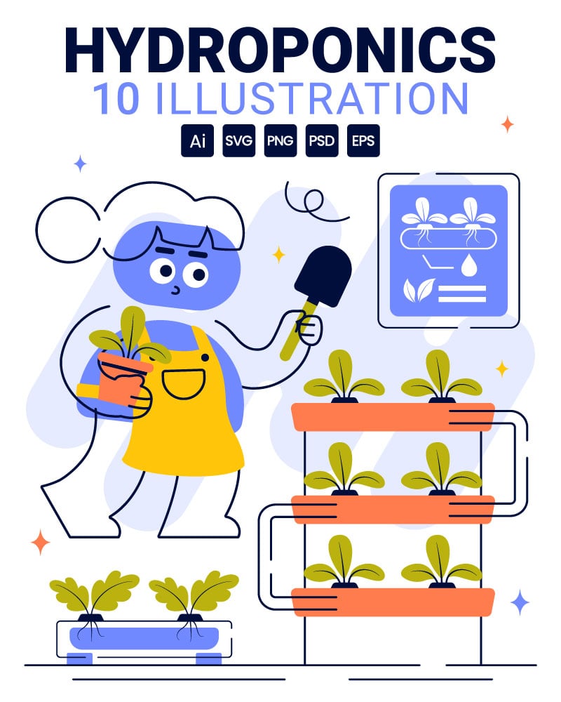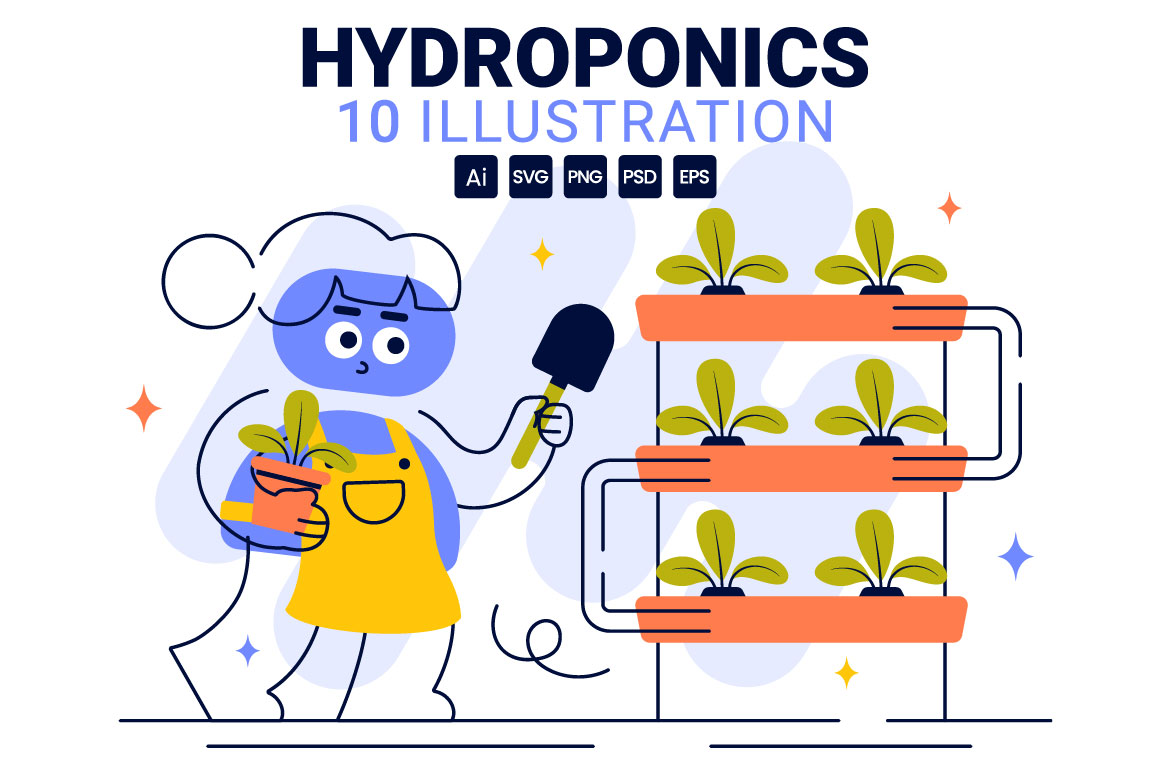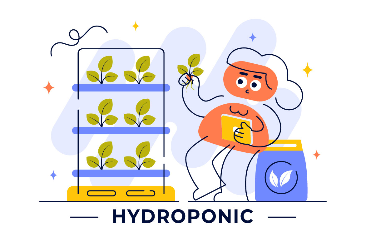 Hydroponics Technology Vector Illustration Featuring a Greenhouse Environment for Growing Green Plants Under Controlled Conditions in a Background Suitable for Poster, Web Banner, Brochure, Landing Page and Others Background Template Features: