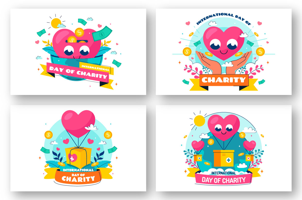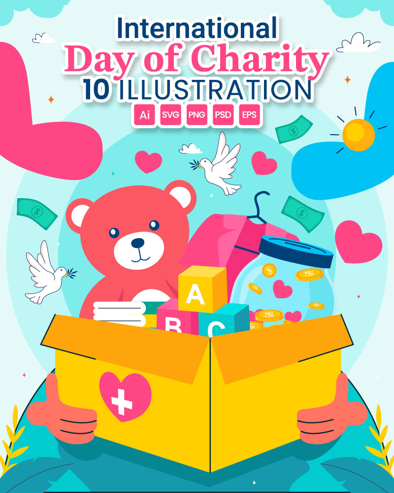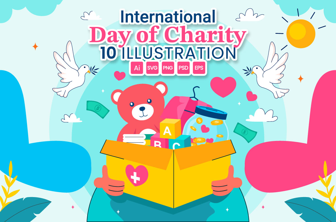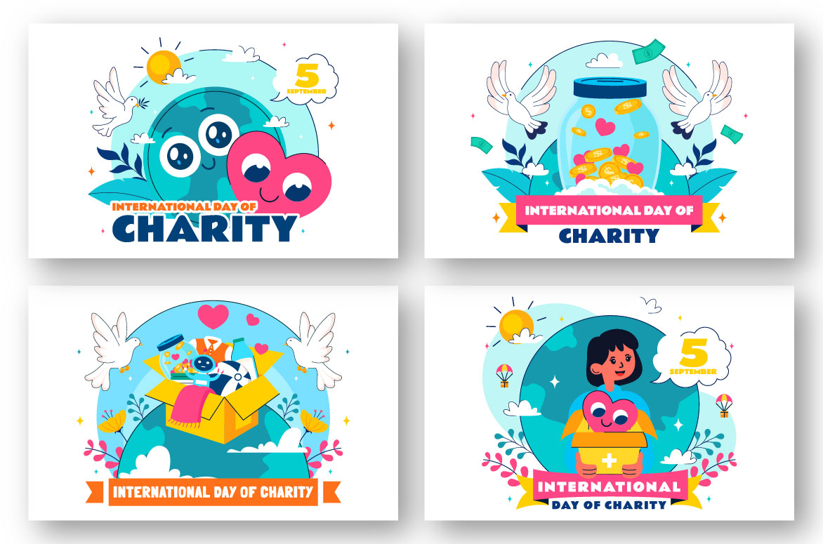 International Day of Charity Vector Illustration on September 5th Featuring a Donation Package and Love Concept by a Volunteer in a Flat Background Suitable for Poster, Web Banner, Brochure, Landing Page and Others Background Template Features: