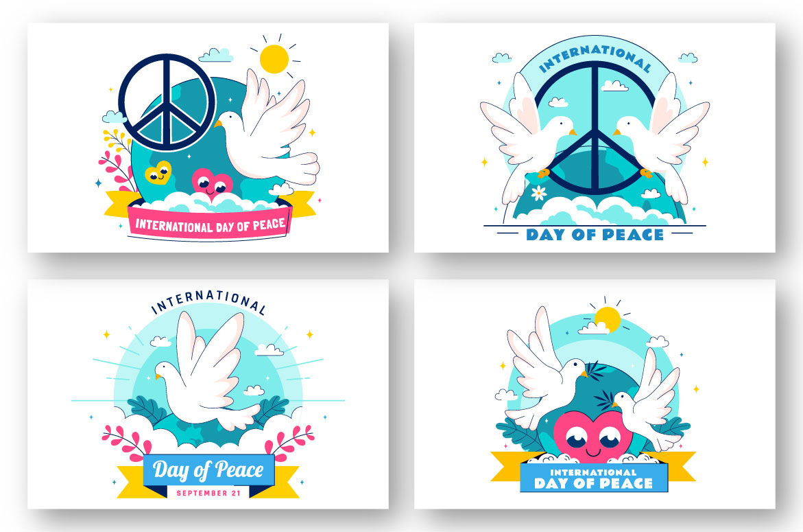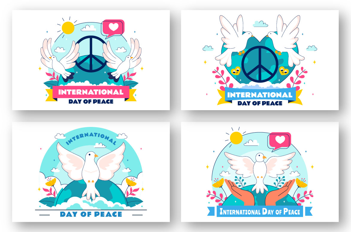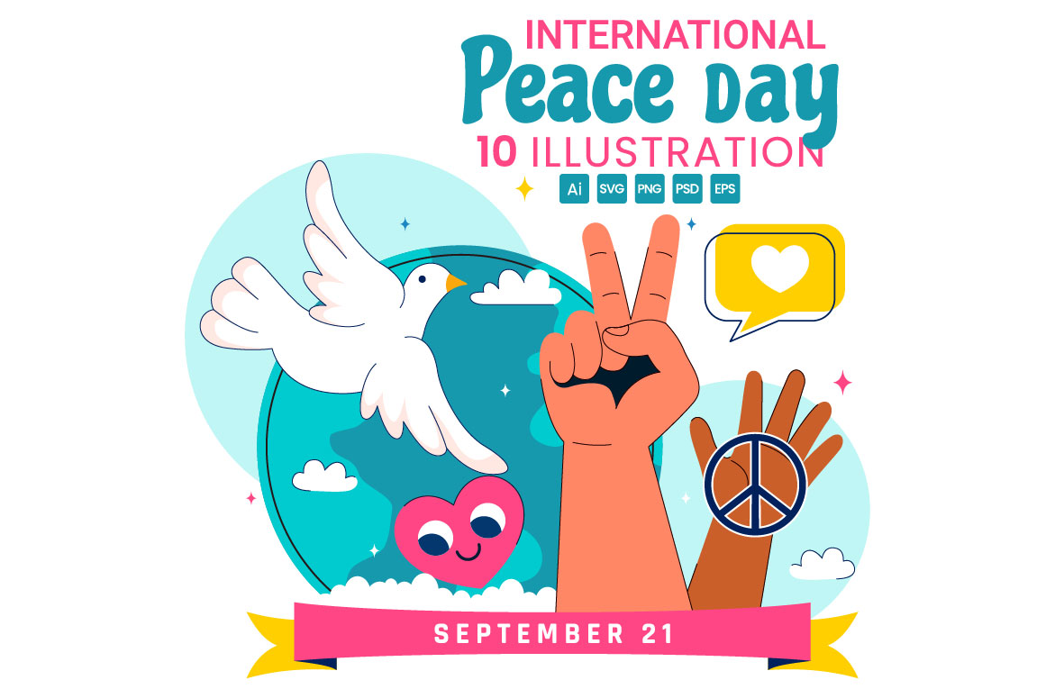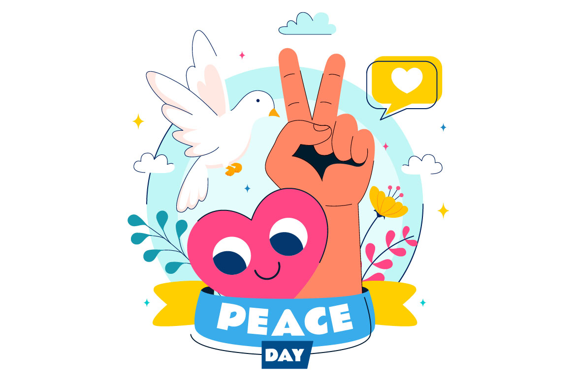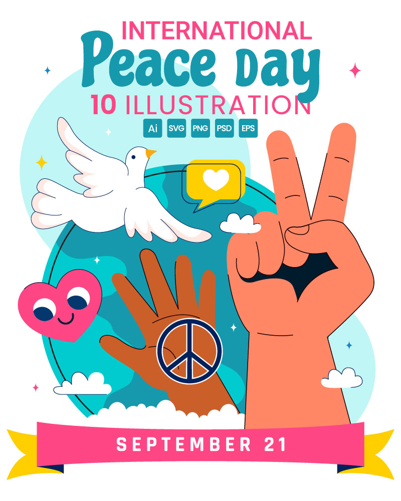International Peace Day Vector Illustration Featuring Hands, Dove, Globe, and Blue Sky to Promote Prosperity Around the World in a Flat Background Suitable for Poster, Web Banner, Brochure, Landing Page and Others Background Template Features: