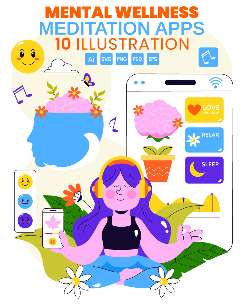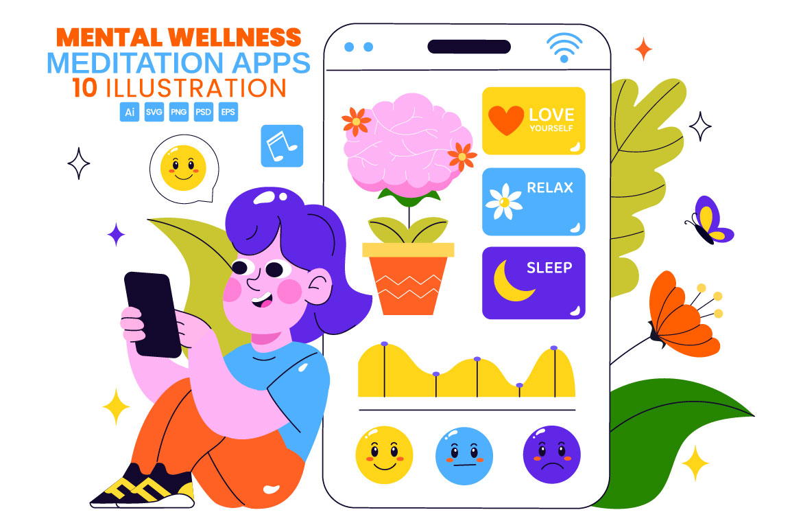 10 Mental Wellness Apps Illustration