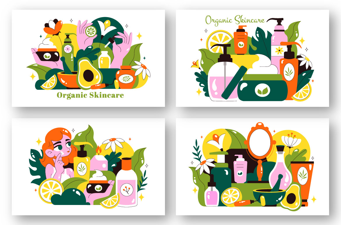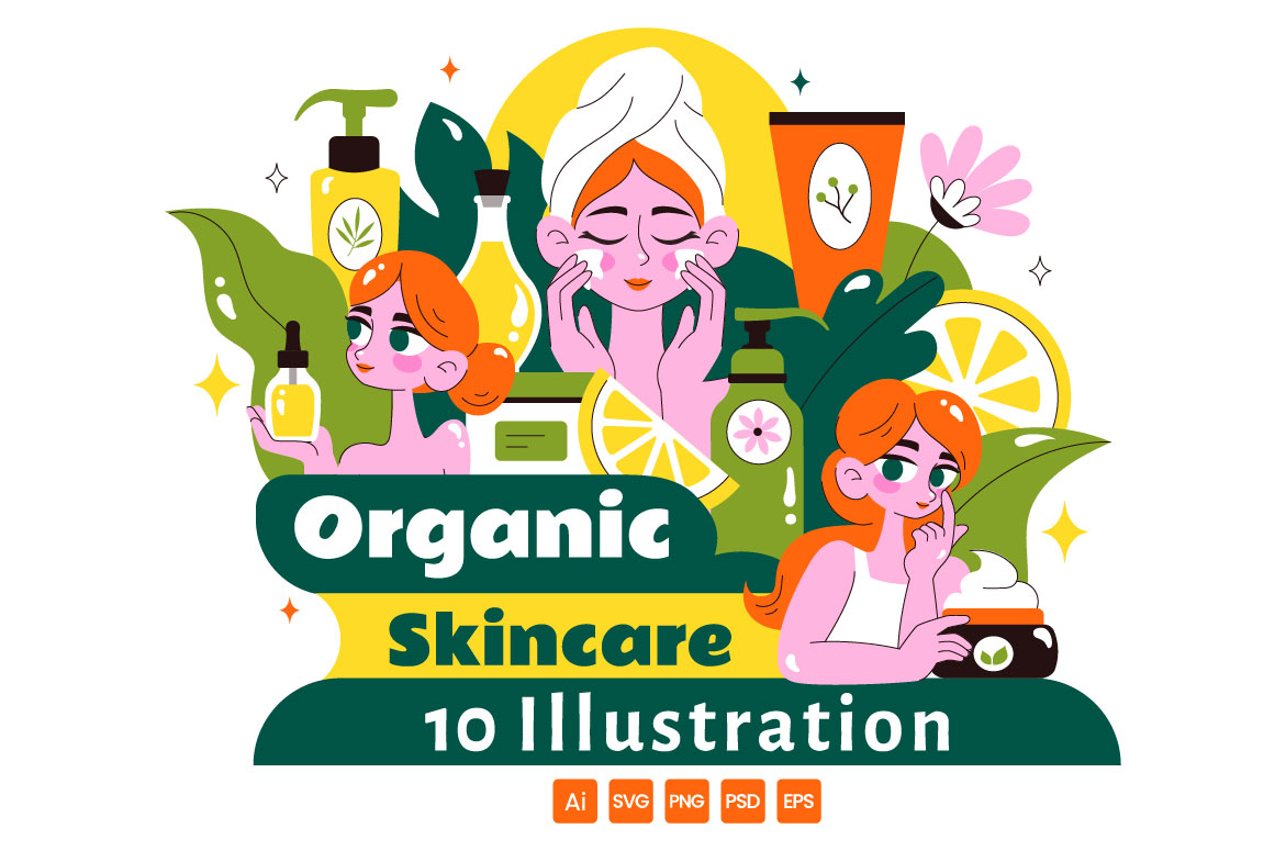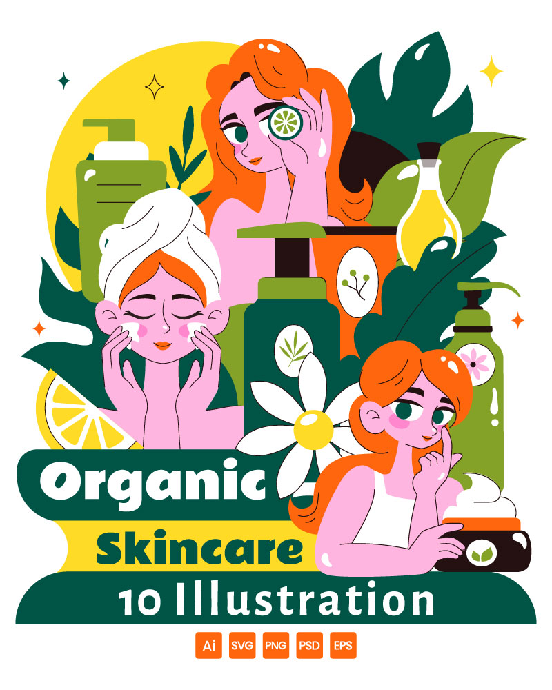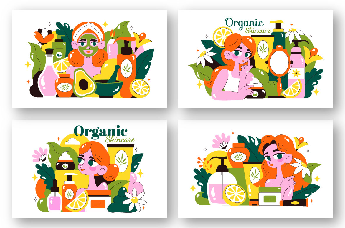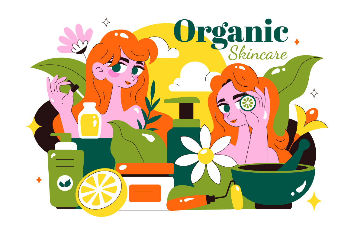 Natural Skin Care Vector Illustration featuring Women Applying Cosmetic Face Skincare Products Made with Organic Ingredients in a Flat Background Suitable for Poster, Web Banner, Brochure, Landing Page and Others Background Template Features:
