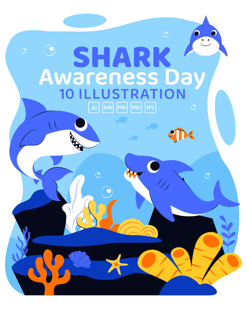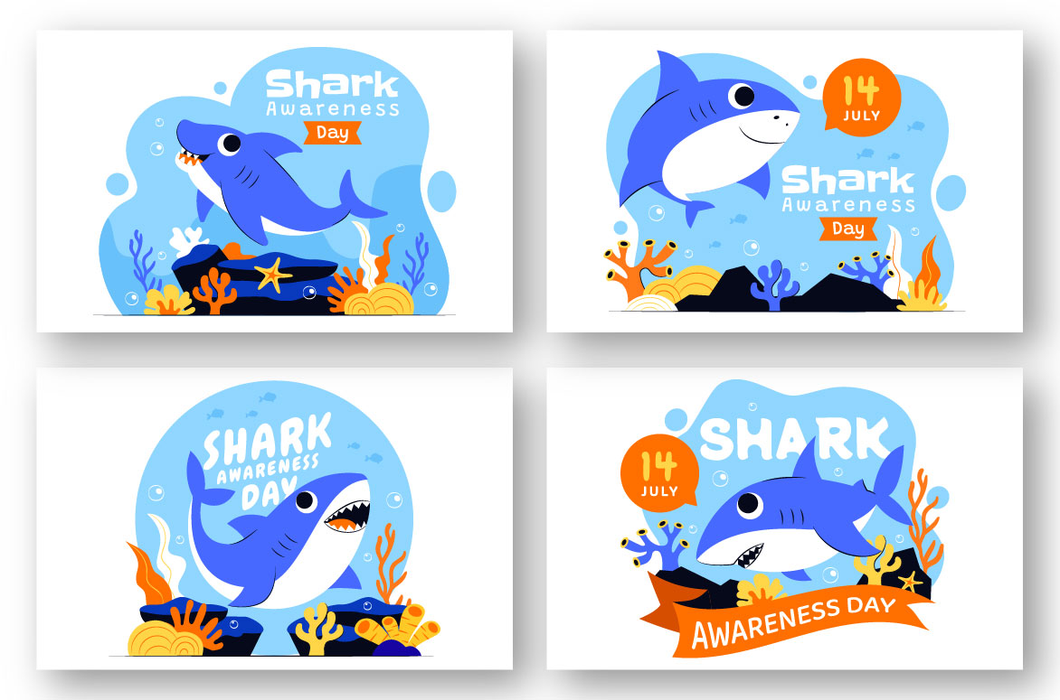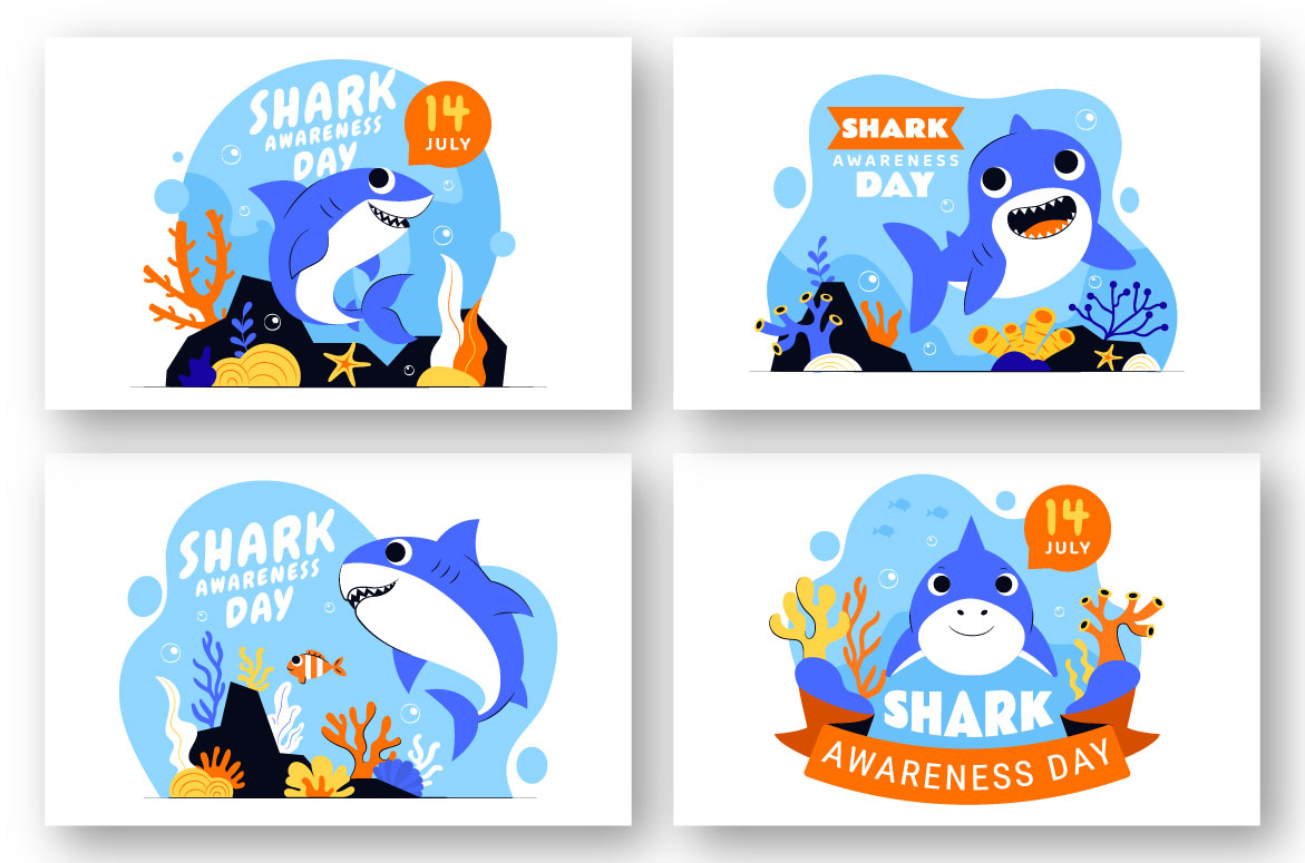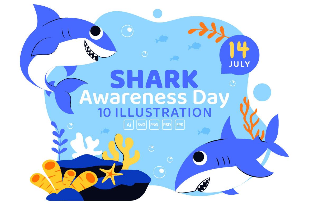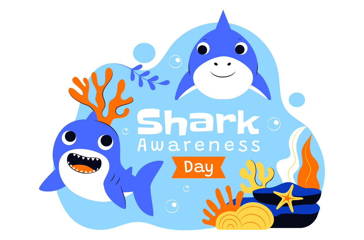 Shark Awareness Day Vector Illustration on 14 July Featuring a Shark and the Ocean to help Preserve the Marine Ecosystem in a Flat Background Suitable for Poster, Web Banner, Brochure, Landing Page and Others Background Template Features: