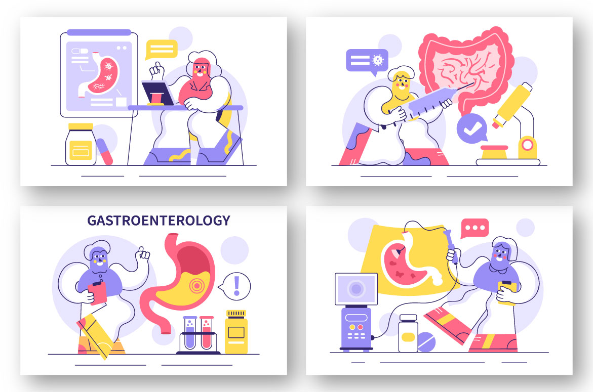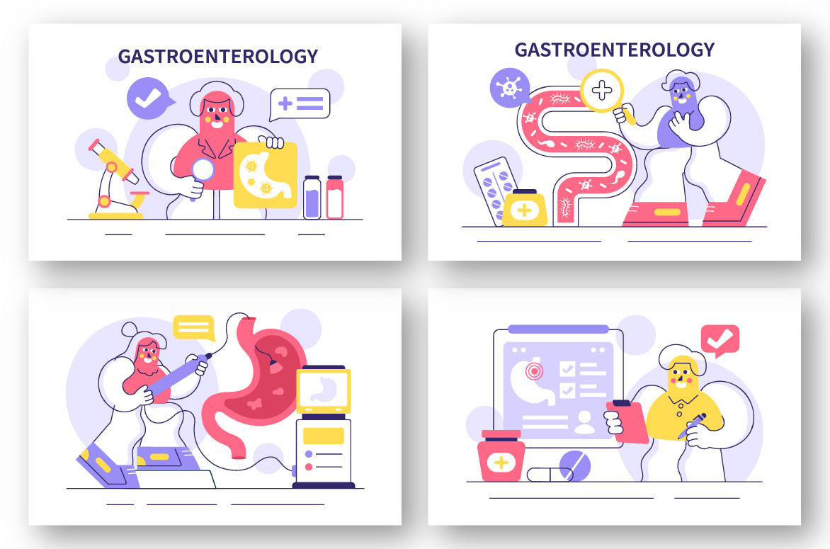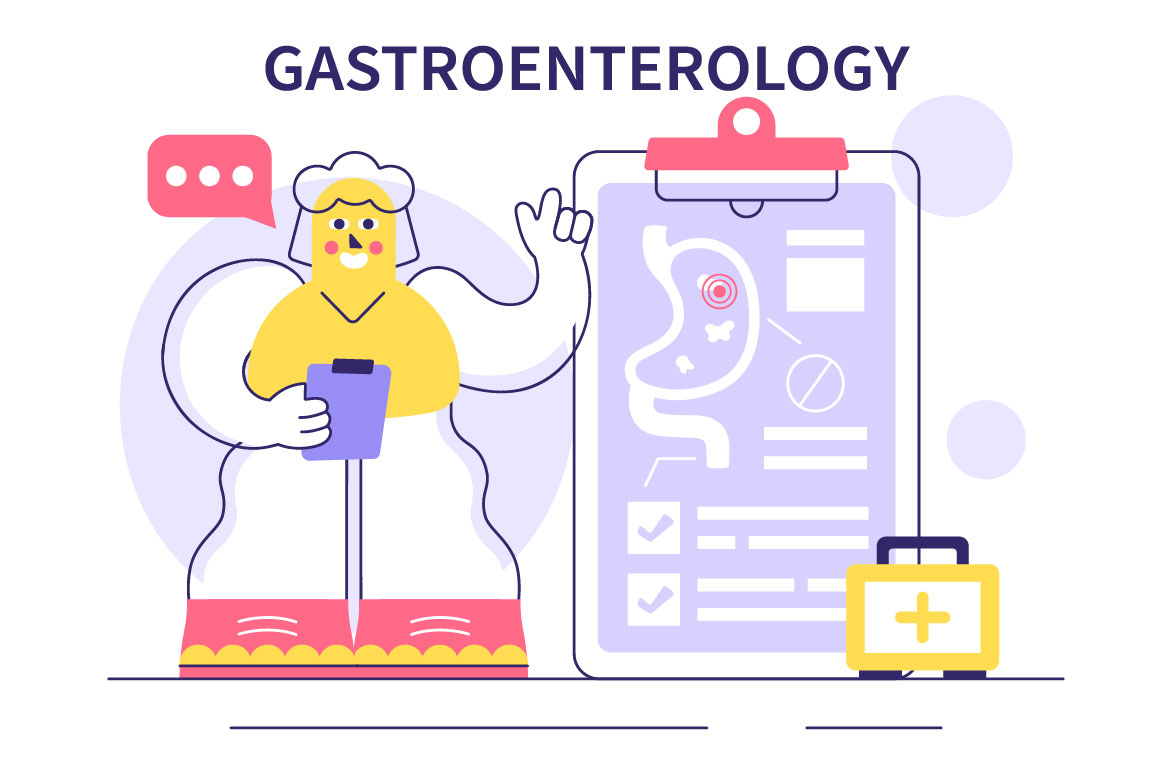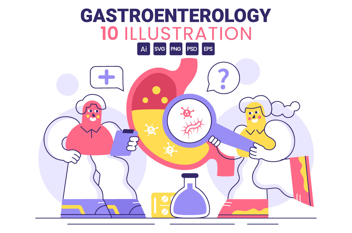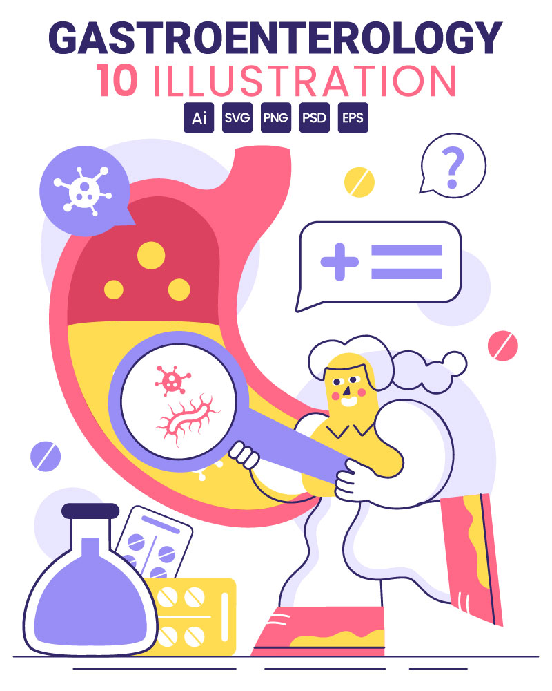 Stomach Health Gastroenterology Vector Illustration Featuring Abdominal Pain and Medical Research for Healthcare in a Flat Style Cartoon Background Suitable for Poster, Web Banner, Brochure, Landing Page and Others Background Template Features: