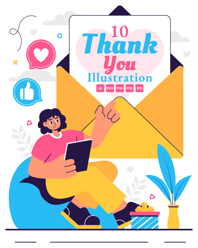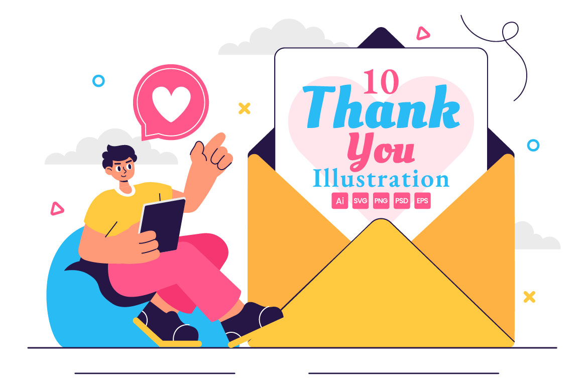Thank You Vector Illustration Featuring a Letter in an Envelope, Perfect for Posters, Web Banners, Brochures, Landing Page and Others Background or Cards in a Flat Style Cartoon Design Template Features: