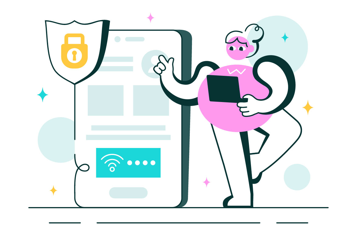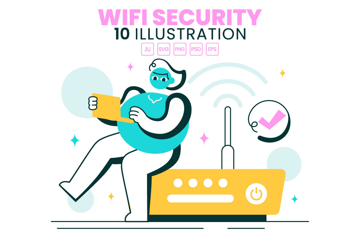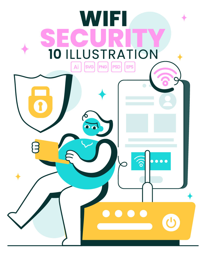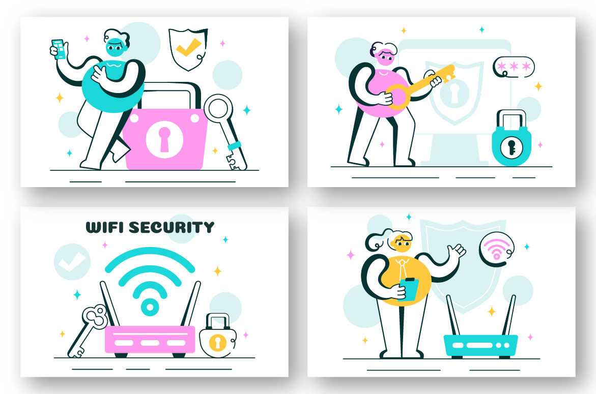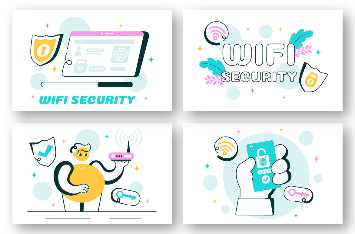 WiFi Security Vector Illustration with Wireless Technology Devices for Internet Connection, Network Protection, Safe Access, and Password Encryption Suitable for Poster, Web Banner, Brochure, Landing Page and Others Background Template Features: