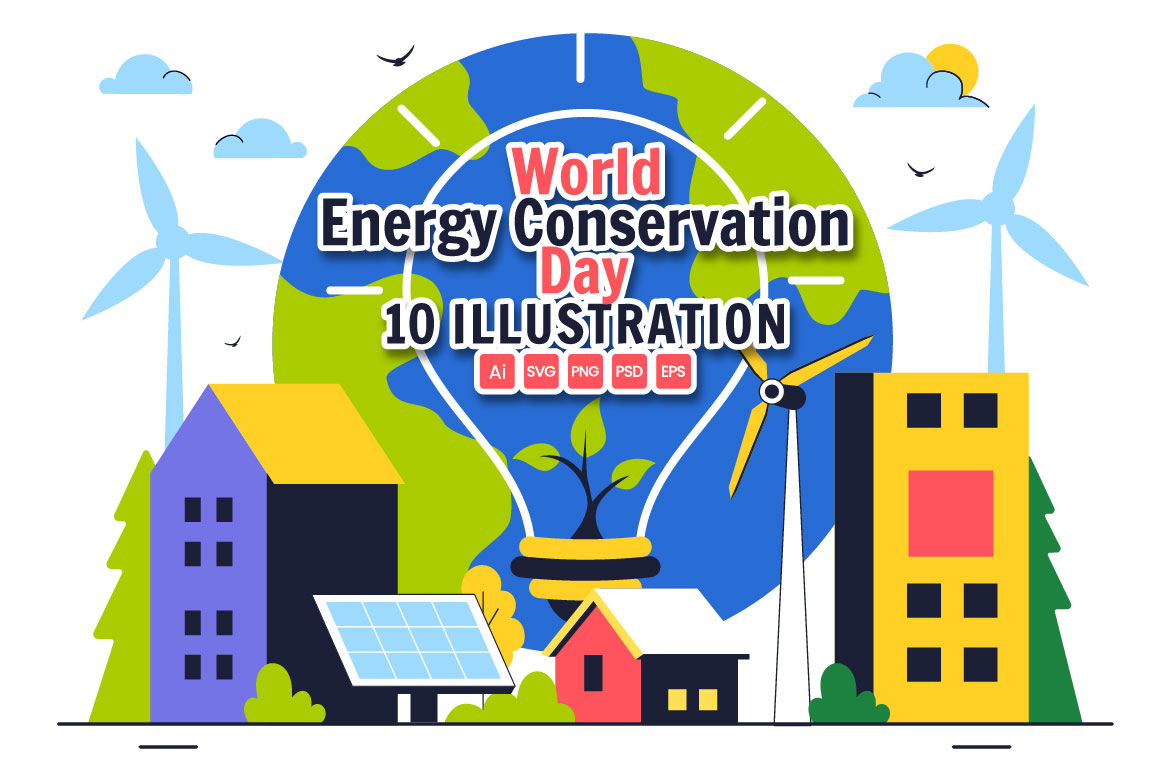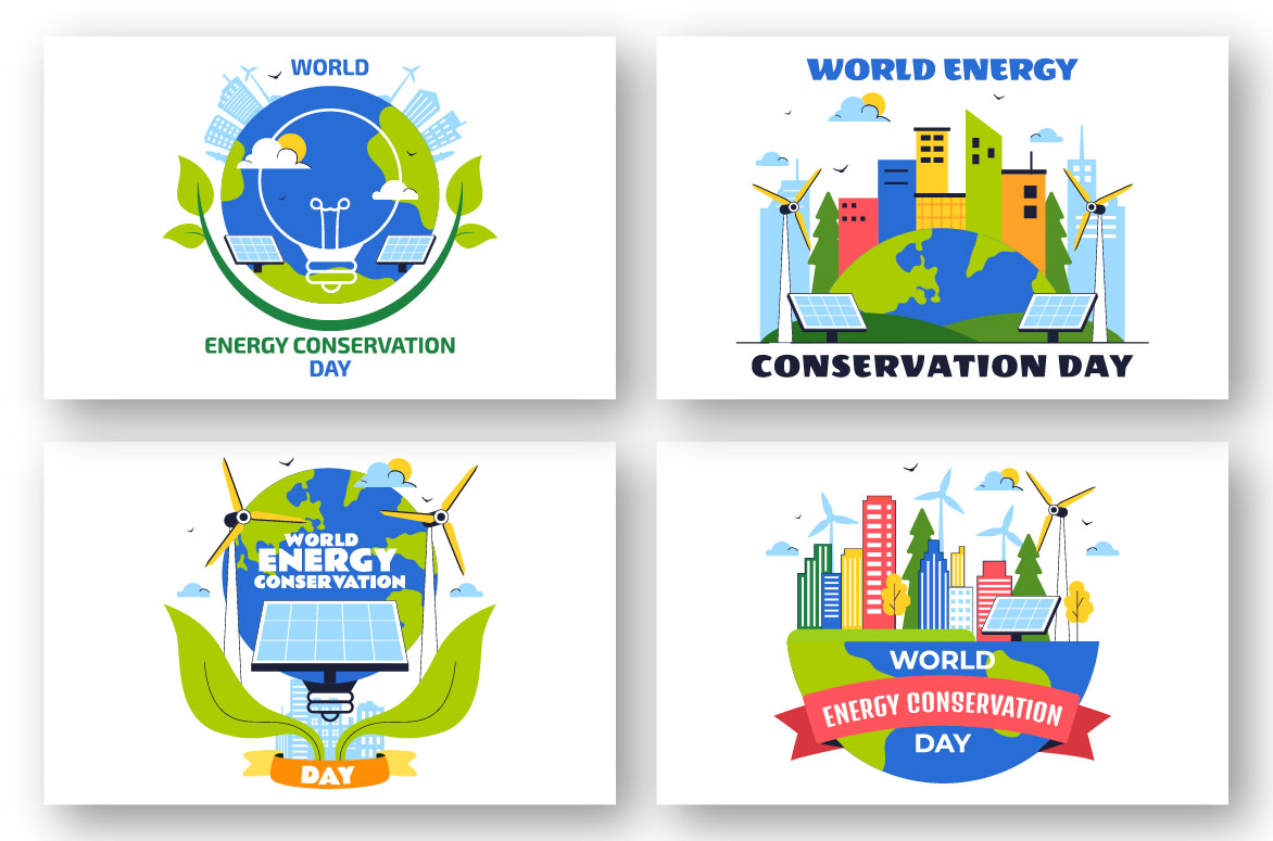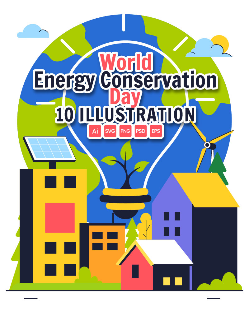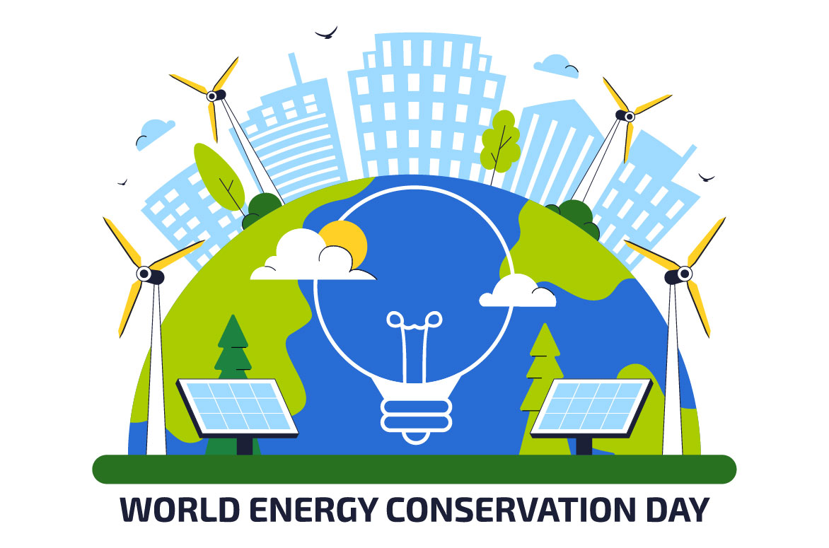 Energy Conservation Day Illustration featuring the Importance of Saving the Planet with Green and Eco Friendly for Maintaining the Global Ecosystem Suitable for Poster, Web Banner, Brochure, Landing Page and Others Background Template Features: