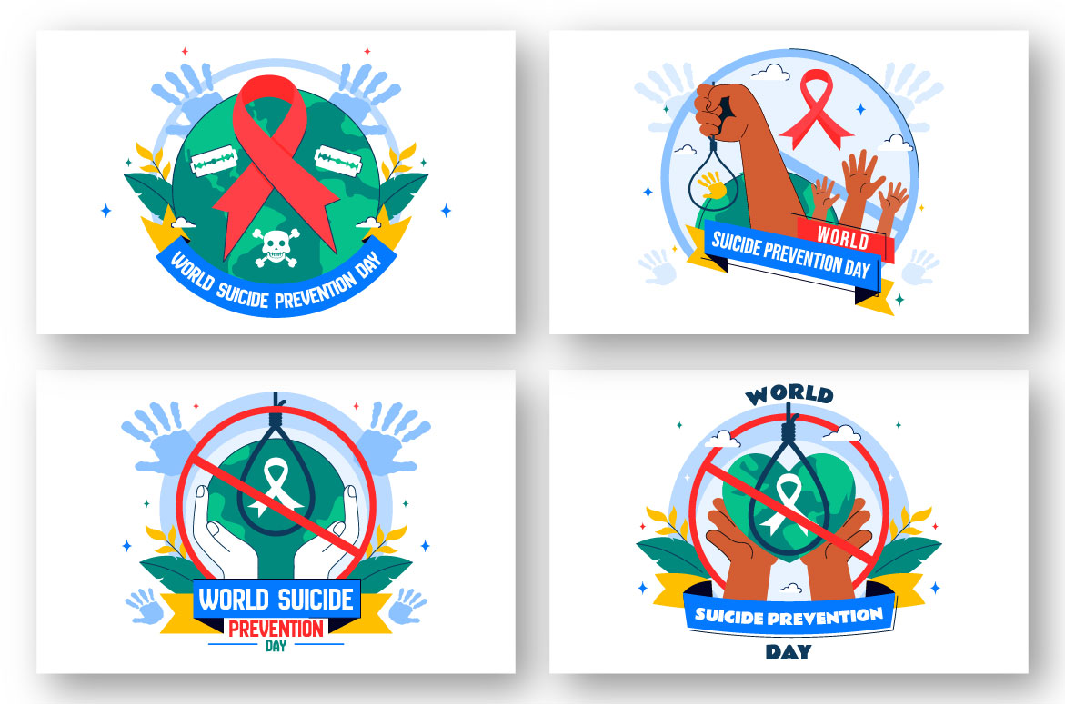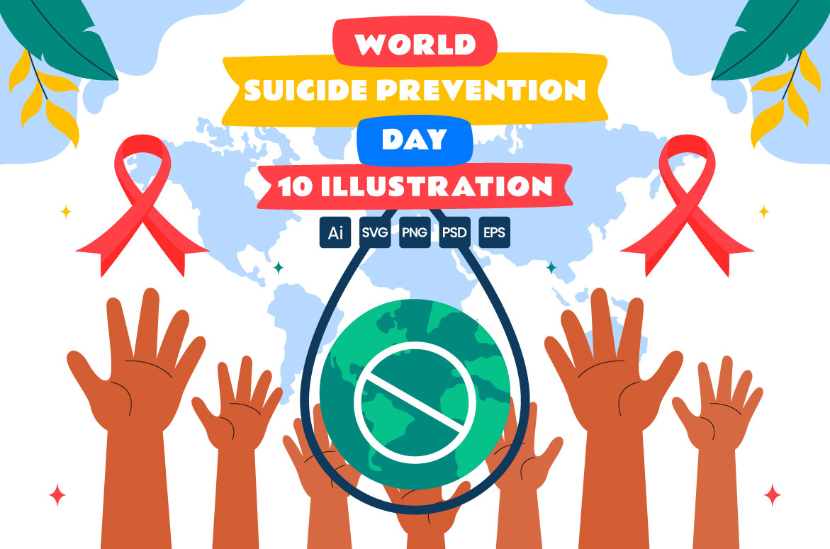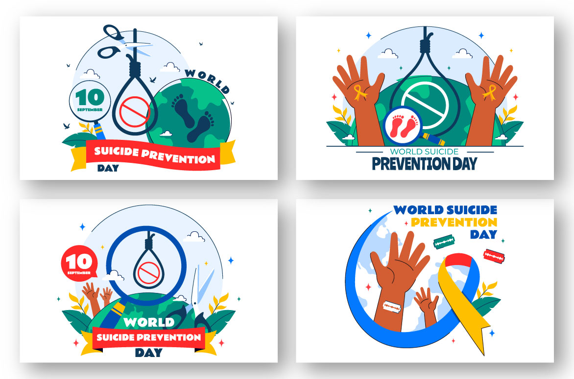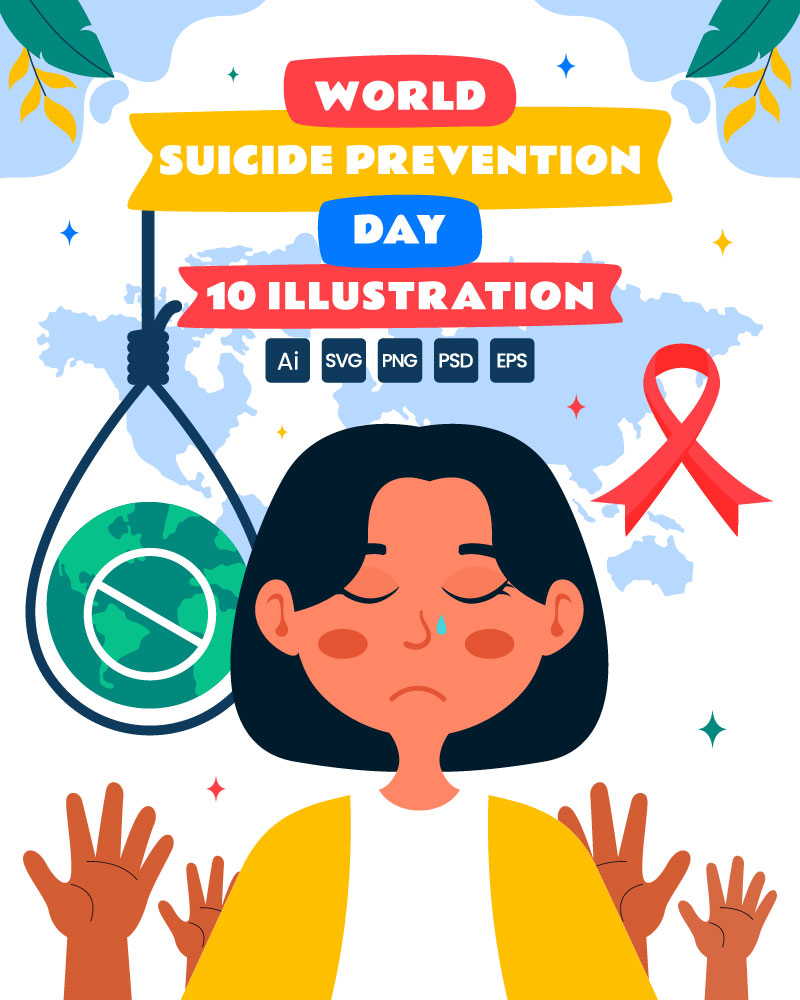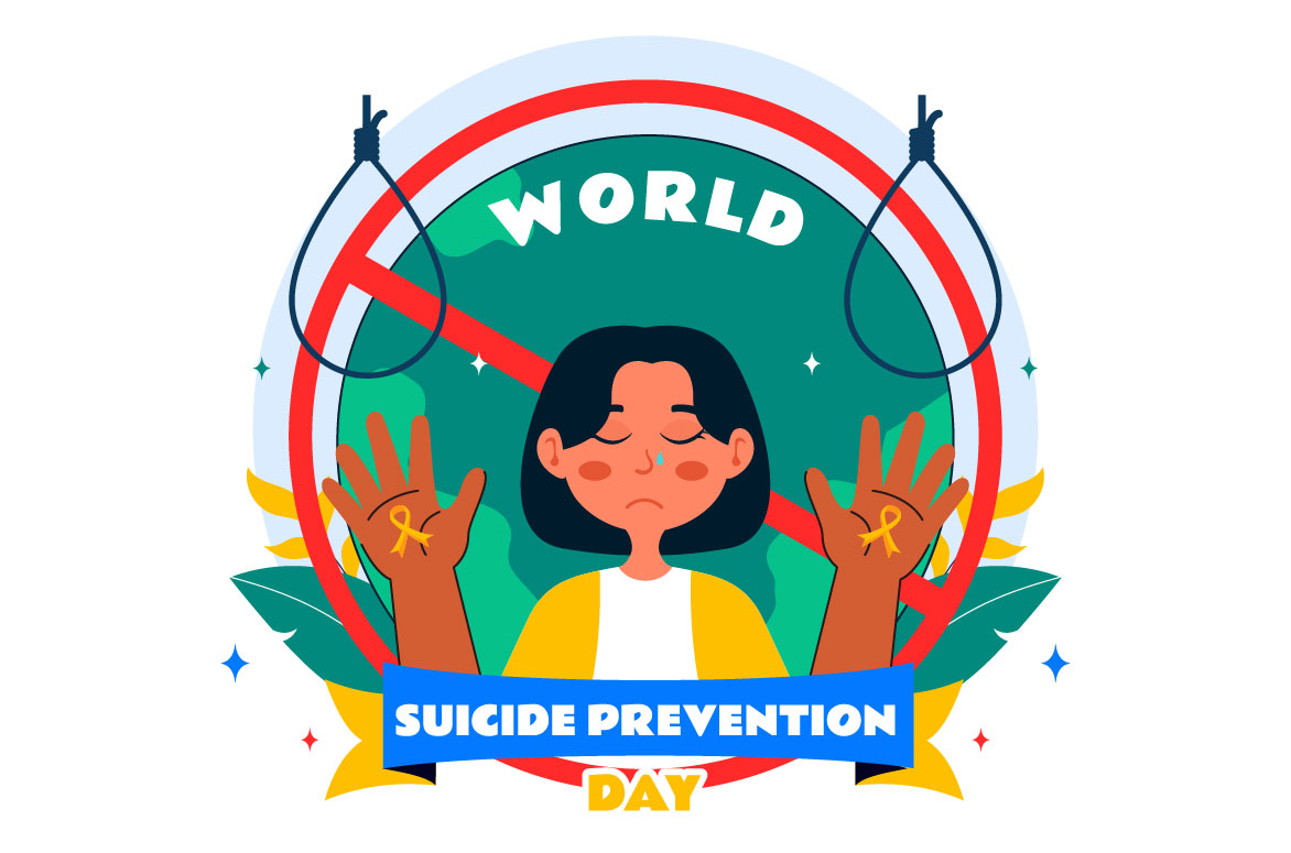 World Suicide Prevention Day Vector Illustration on September 10, Featuring a Hanging Rope and Helping Hands to Prevent Suicide in a Flat Background Suitable for Poster, Web Banner, Brochure, Landing Page and Others Background Template Features: