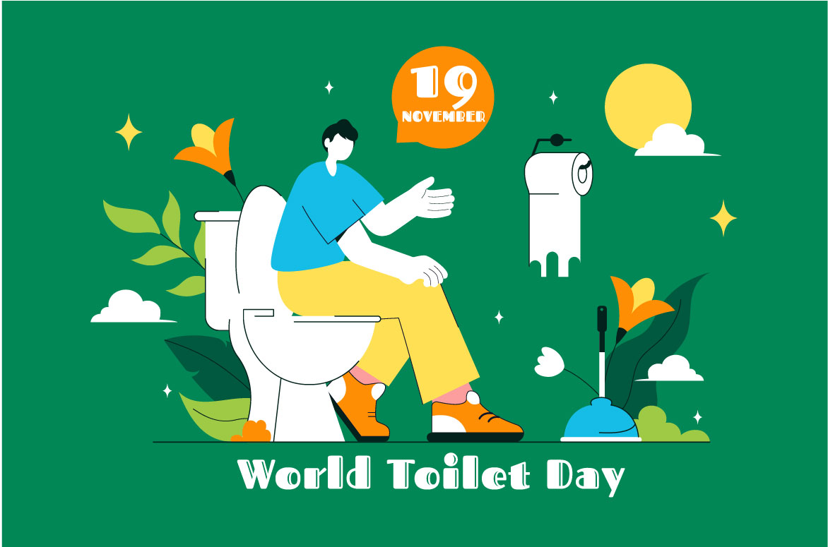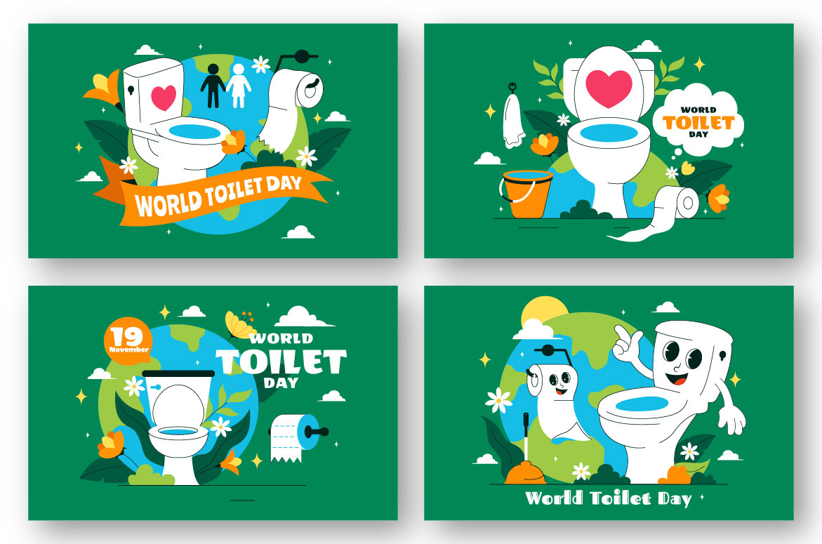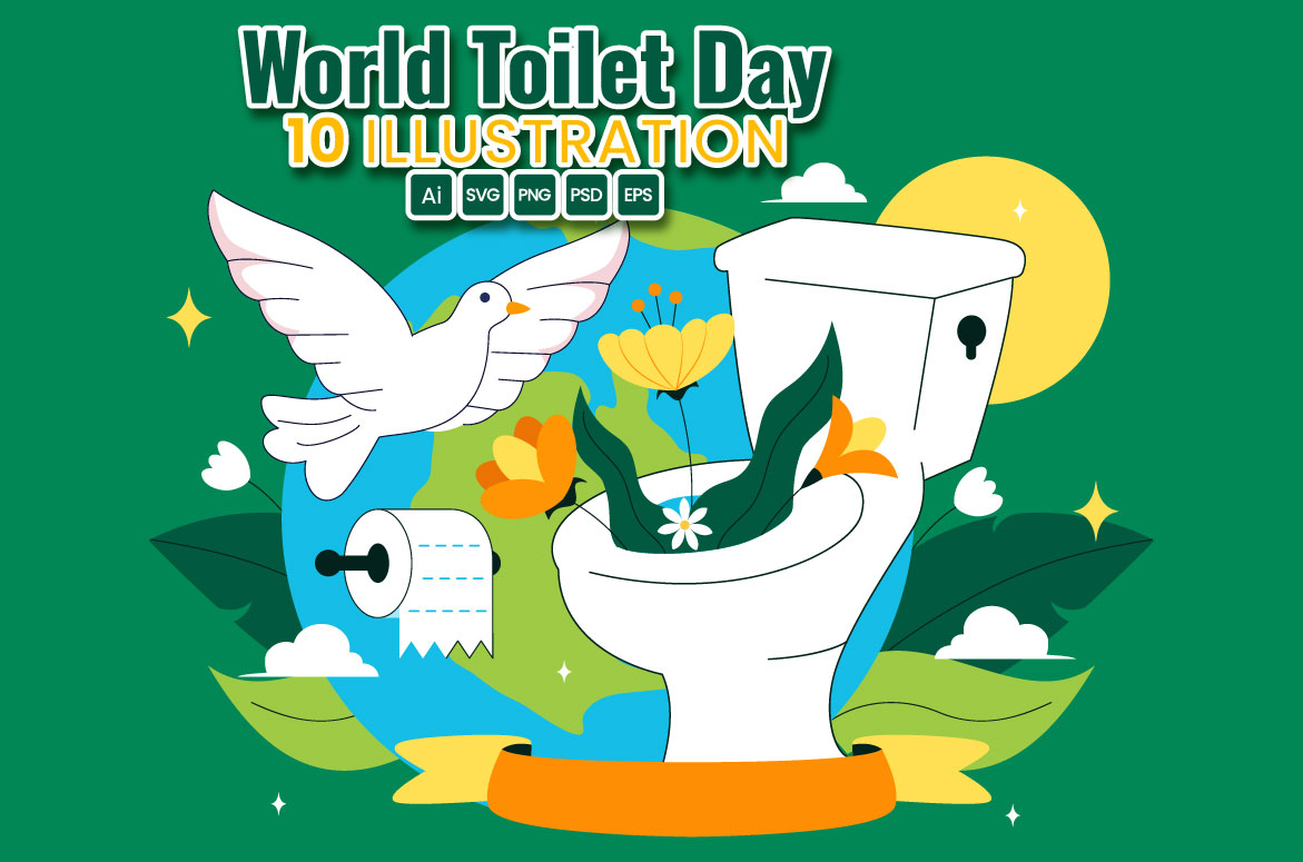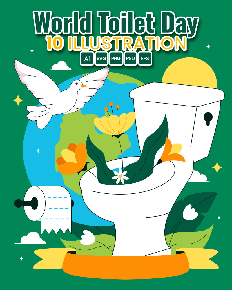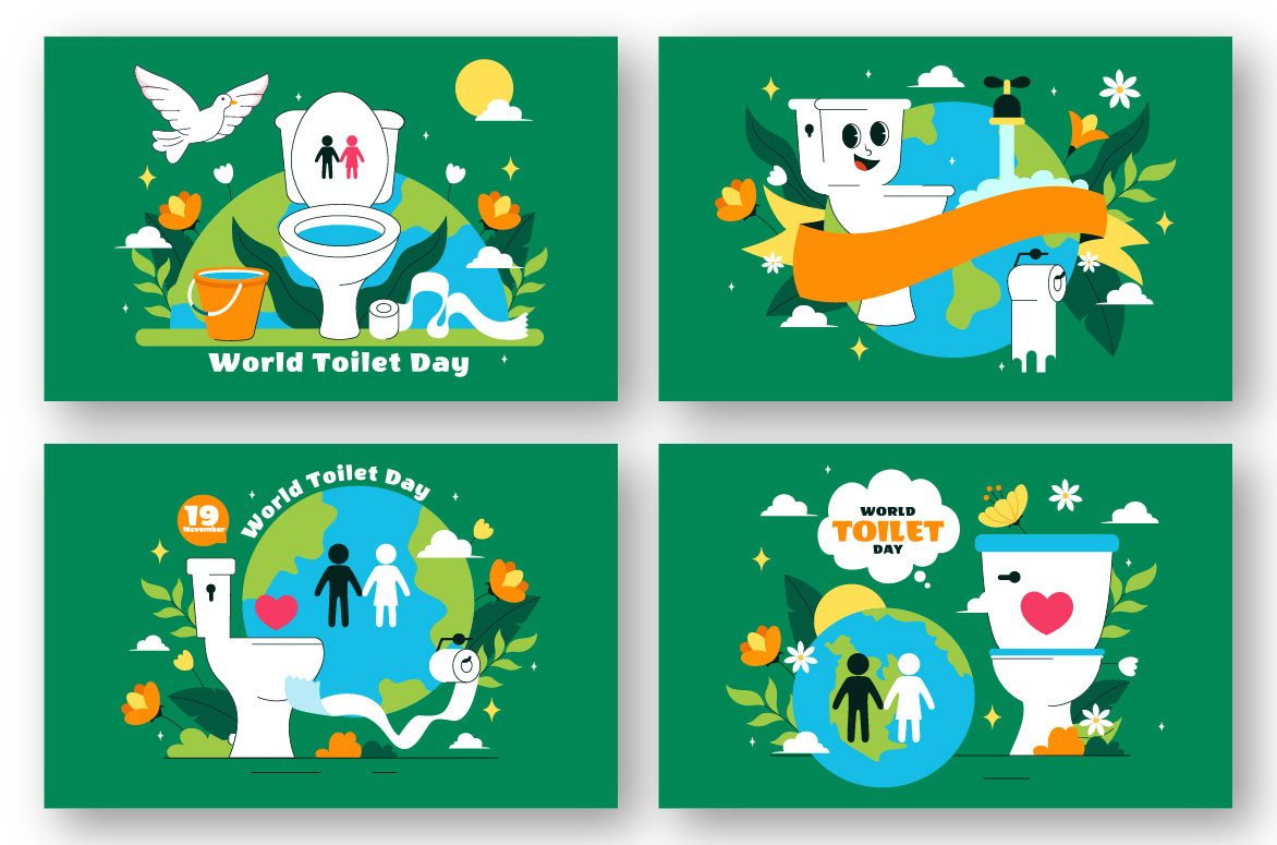 World Toilet Day Vector Illustration on November 19 featuring Toilet, Earth, and Bathroom Hygiene Equipment for Awareness in a Flat Background Suitable for Poster, Web Banner, Brochure, Landing Page and Others Background Template Features: