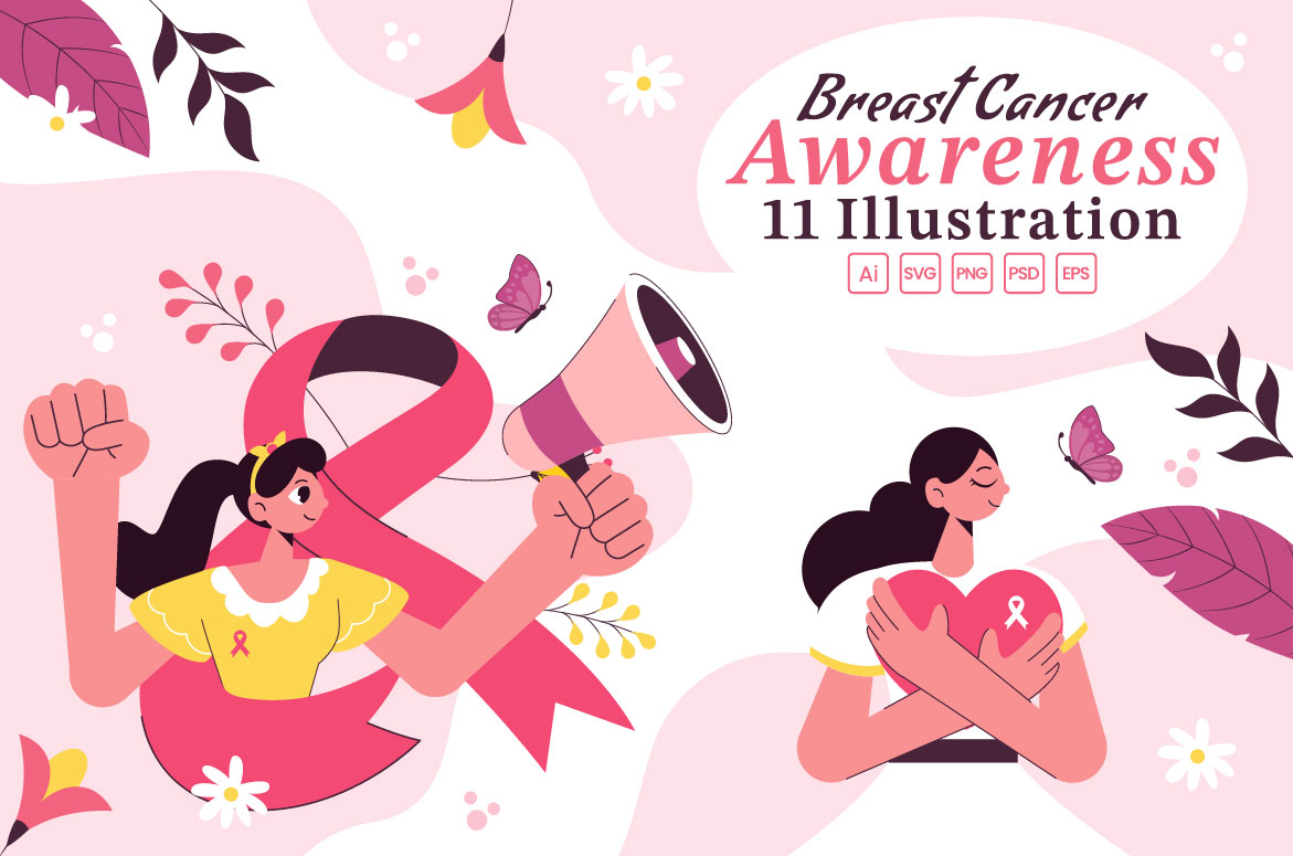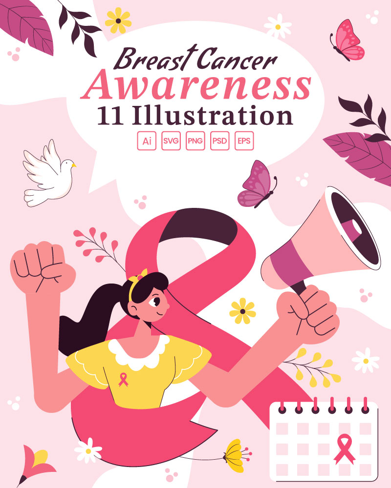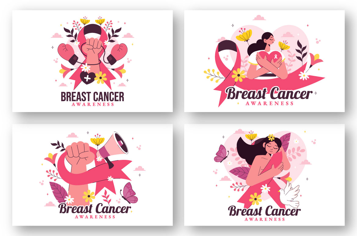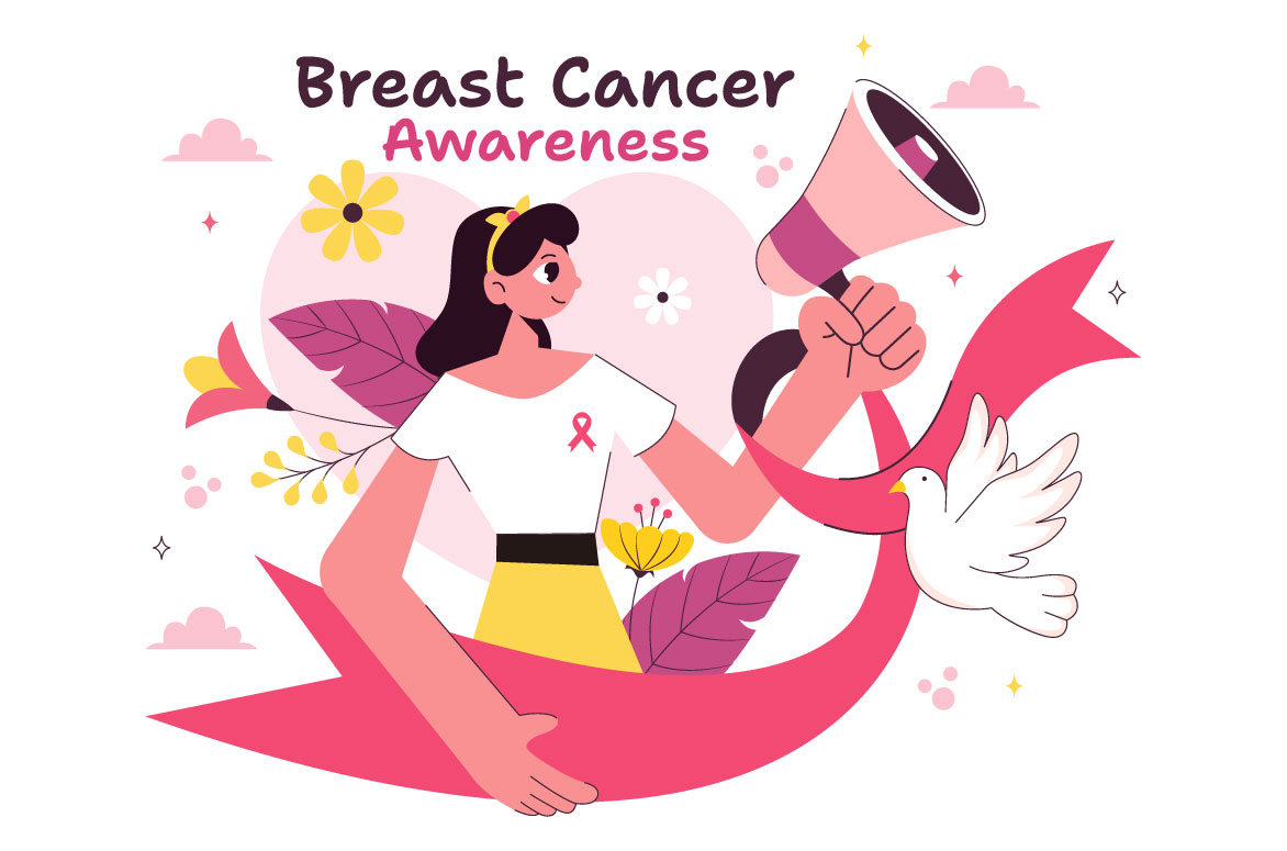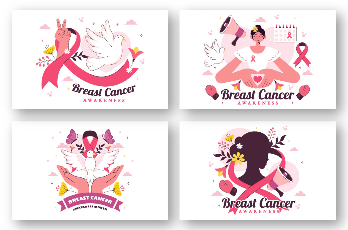 Breast Cancer Awareness Month Vector Illustration of Diverse Women with Pink Support Ribbon for Healthcare Campaign, Solidarity and Medical Prevention Suitable for Poster, Web Banner, Brochure, Landing Page and Others Background Template Features: