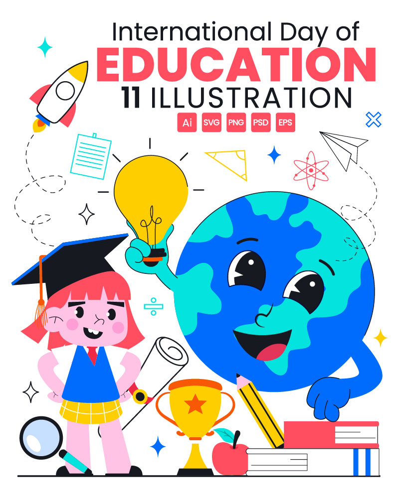 International Day of Education Vector Illustration on January 24, Featuring Students, Books, and Learning Tools in a Flat Style Cartoon Background Suitable for Poster, Web Banner, Brochure, Landing Page and Others Background Template Features: