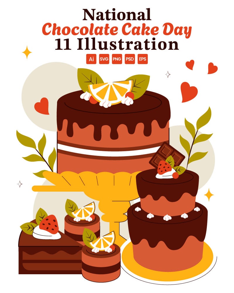 11 National Chocolate Cake Day Vector Illustration