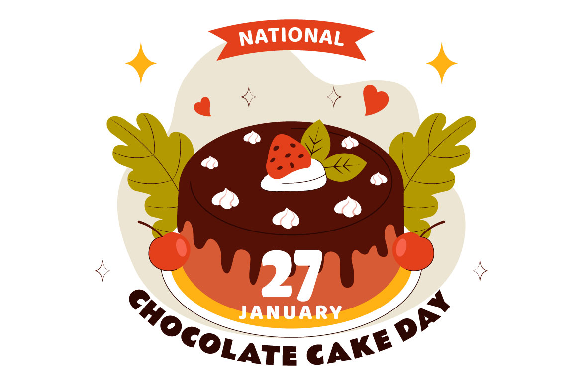 National Chocolate Cake Day Vector Illustration Featuring a Sweet And Delicious Dessert With a Festive Flat Style Cartoon Background Suitable for Poster, Web Banner, Brochure, Landing Page and Others Background Template Features: