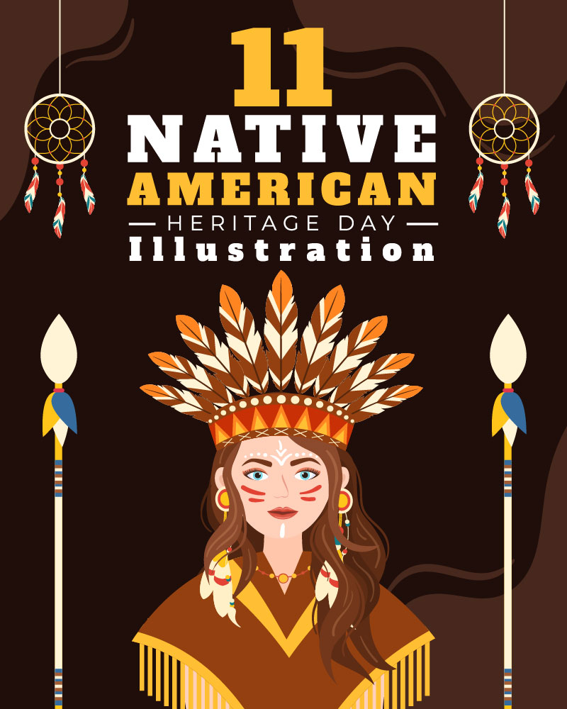 Native American Heritage Day Template Hand Drawn Cartoon Flat Illustration to Recognize the Achievements and Contributions of Tribal Indian Culture Design Concept Suitable for Poster, Banner, Brochure, Cover and Other Template Features: