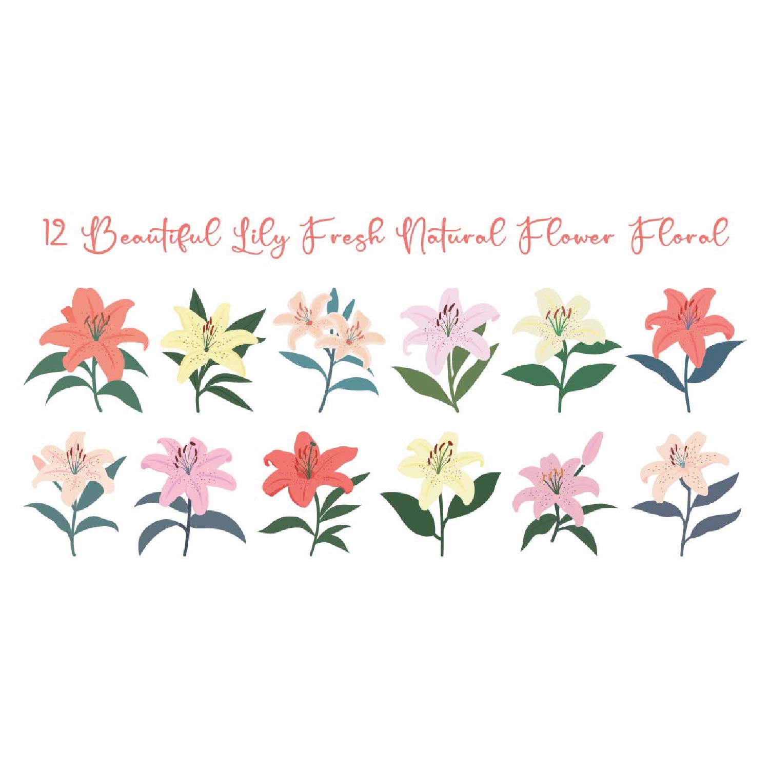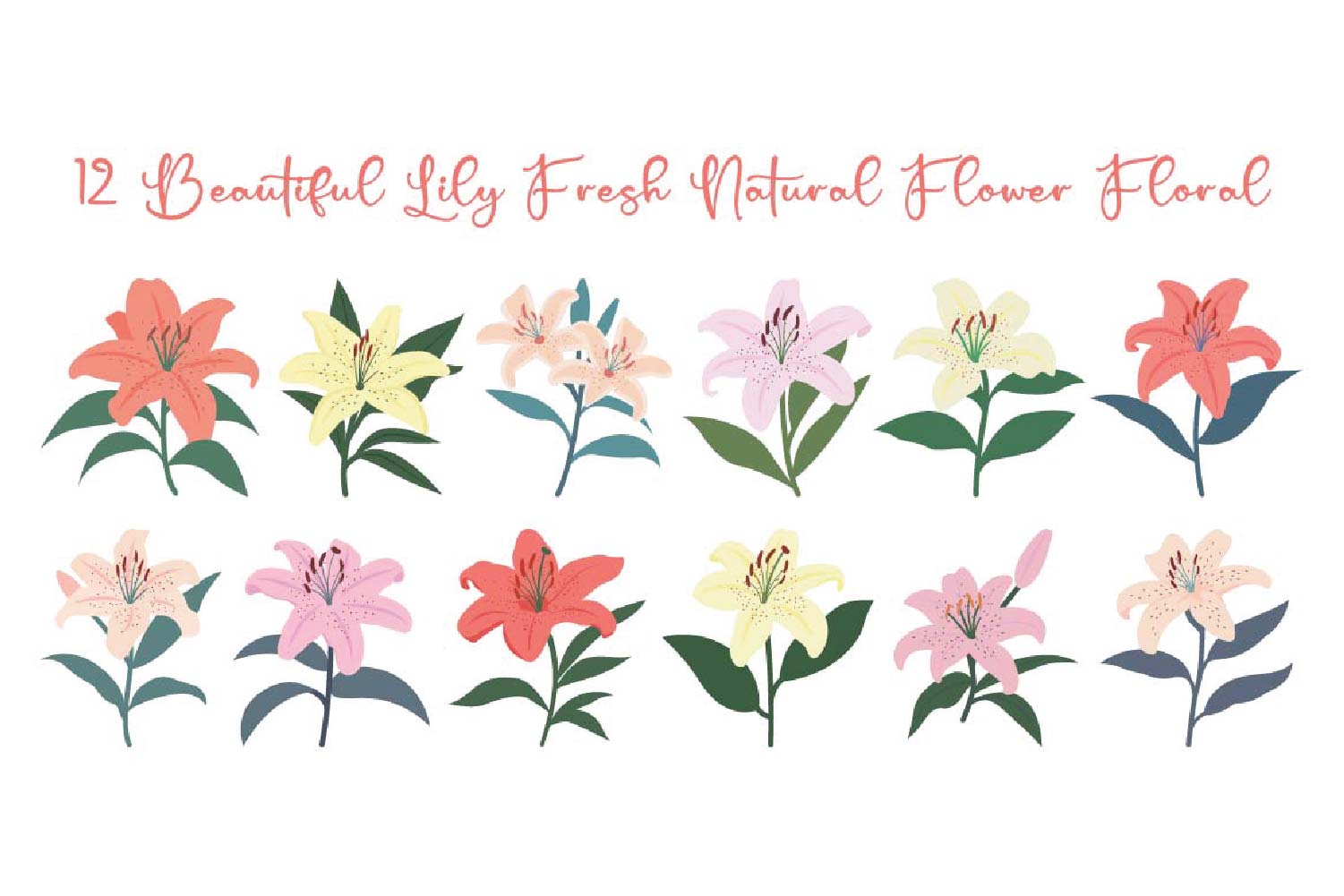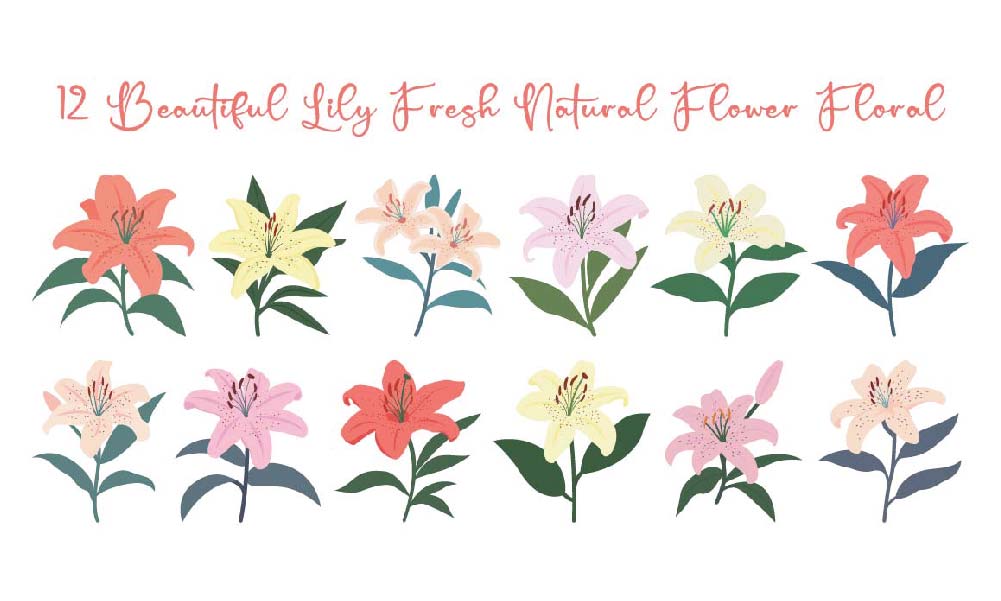 12 Beautiful Lily Fresh Natural Flower Floral Illustration