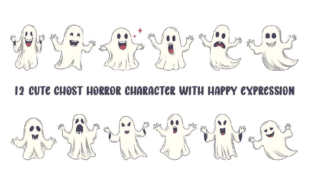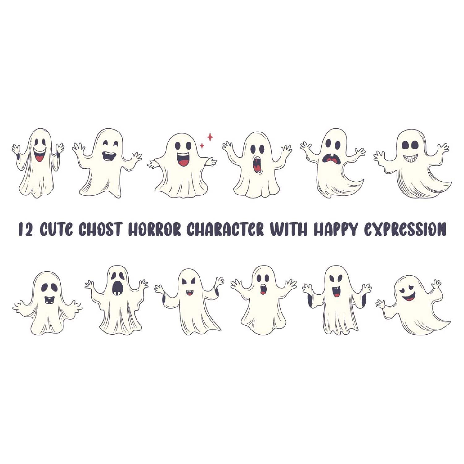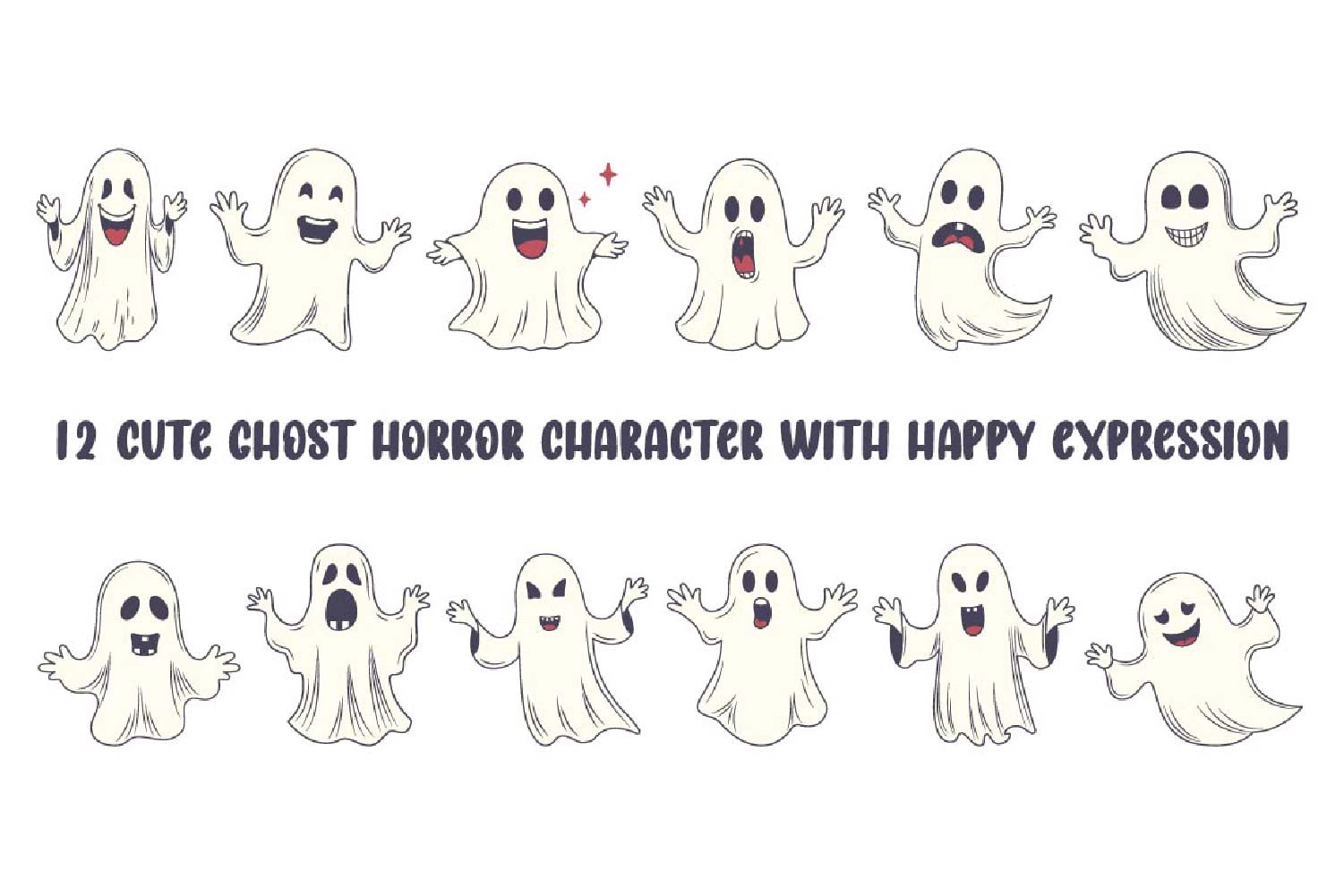12 Cute Ghost Horror Character with Happy Expression Illustration