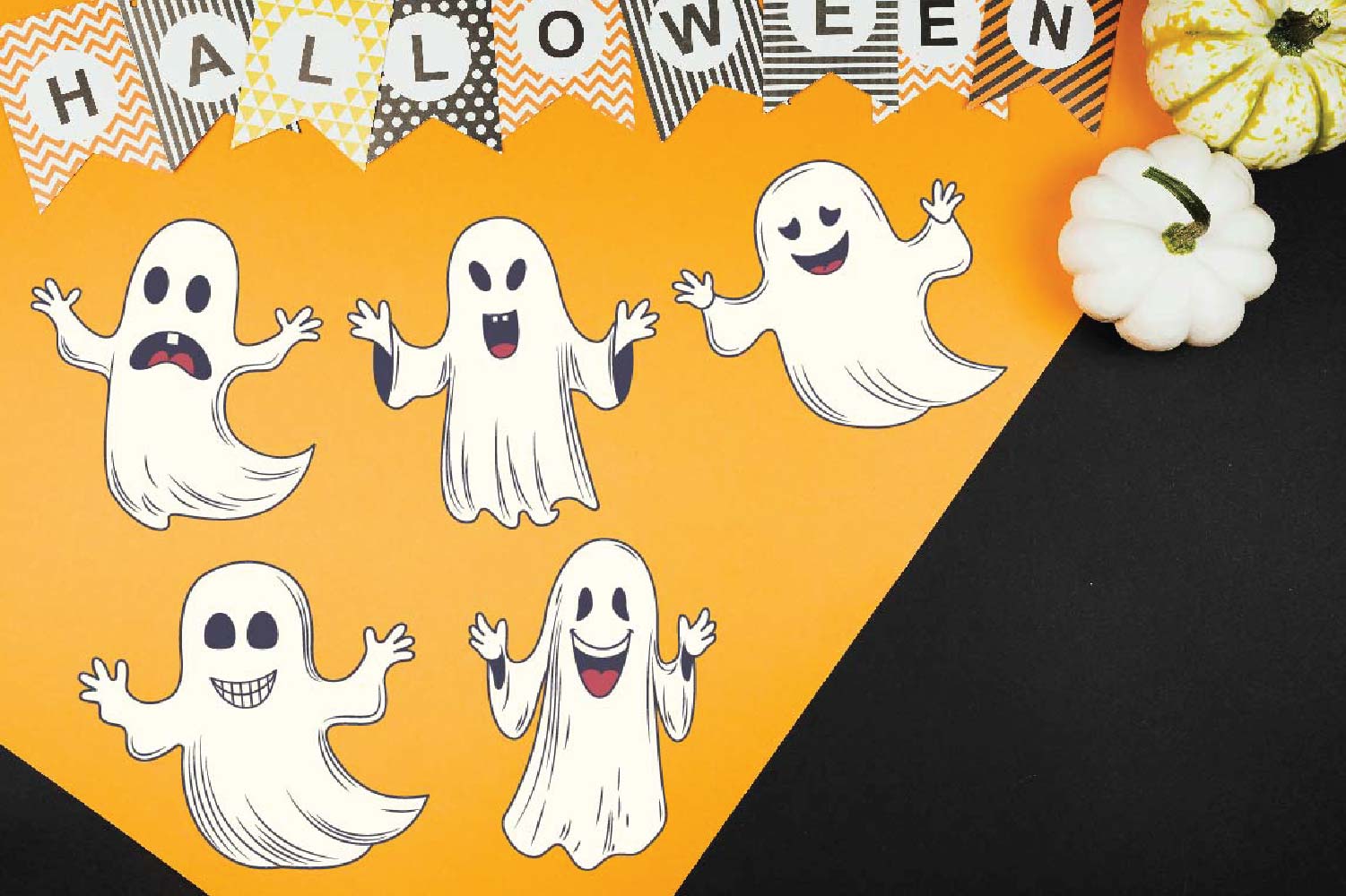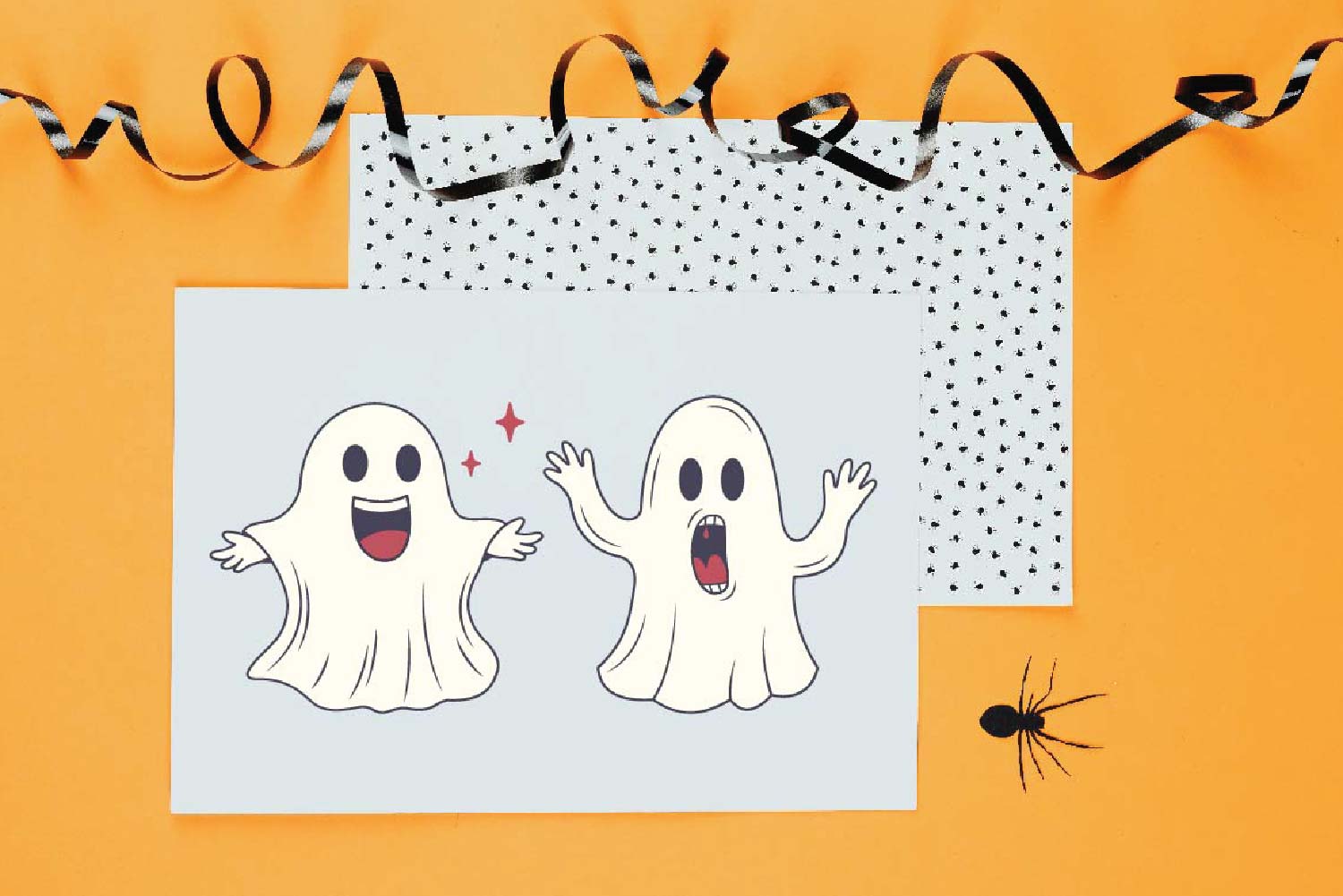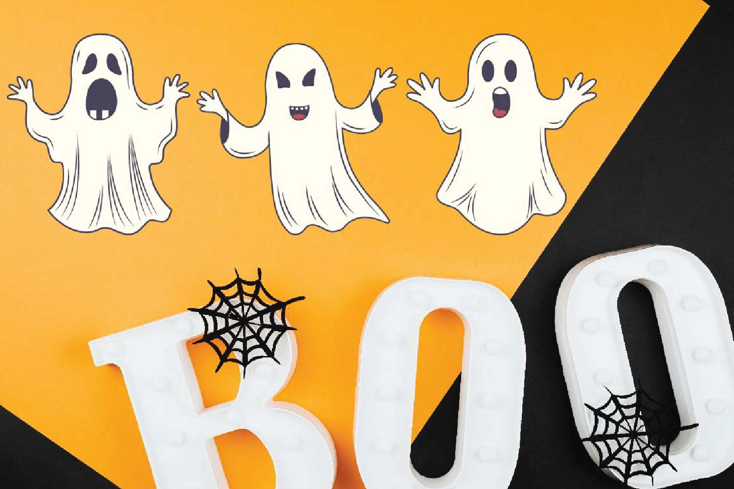 12 Cute Ghost Horror Character with Happy Expression Illustration