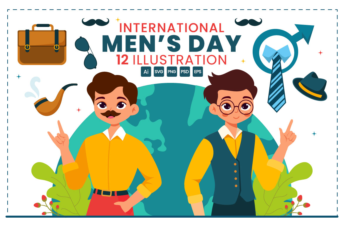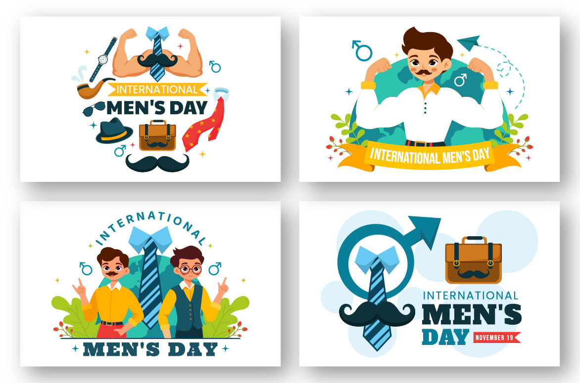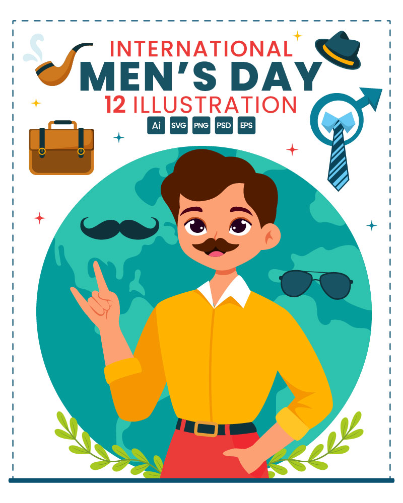 International Men's Day Vector Illustration on November 19 Featuring Men's Accessories like Ties and Mustaches in a Flat Style Cartoon Background Suitable for Poster, Web Banner, Brochure, Landing Page and Others Background Template Features: