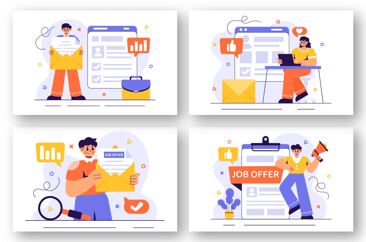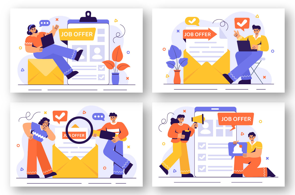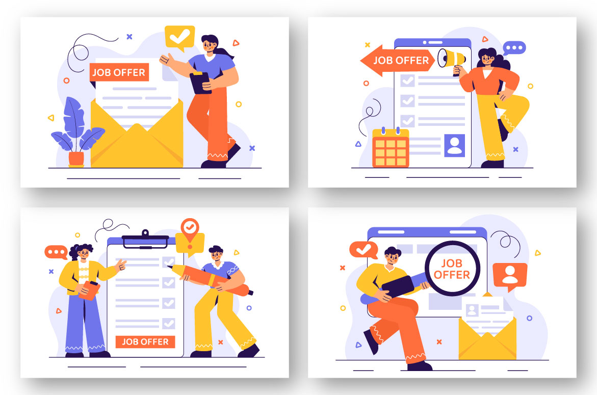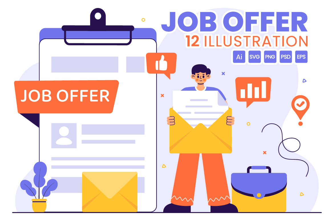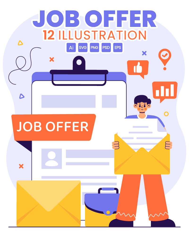 Job Offer Vector Illustration featuring a Businessman, Recruitment Process, Career Opportunities, and Company Vacancy in a Flat Style Background Suitable for Poster, Web Banner, Brochure, Landing Page and Others Background Template Features: