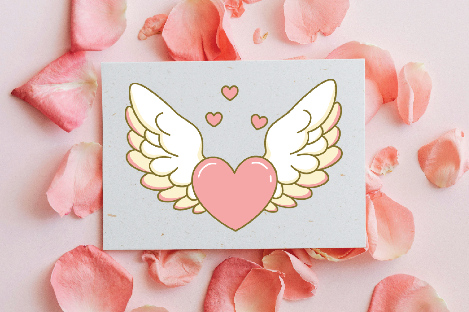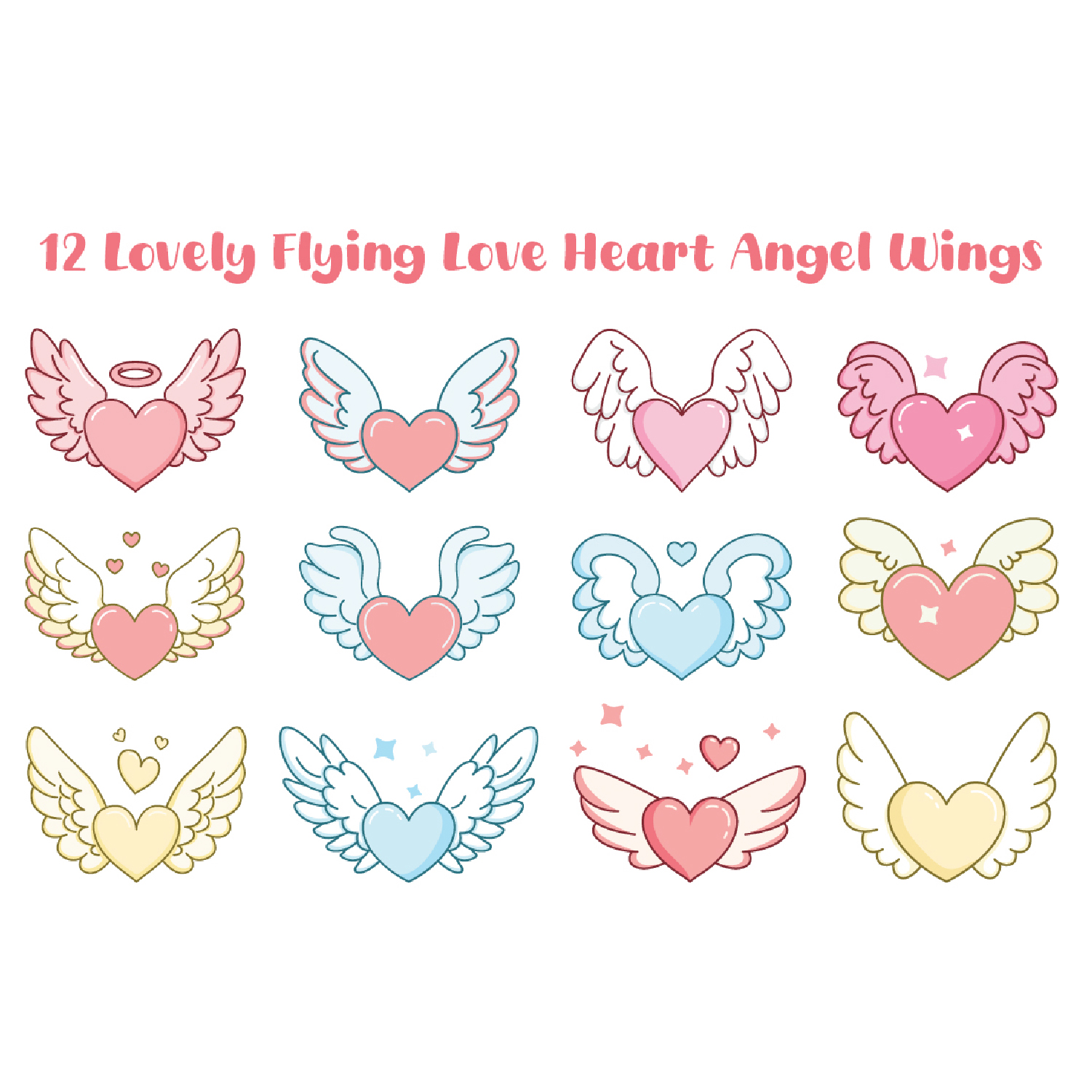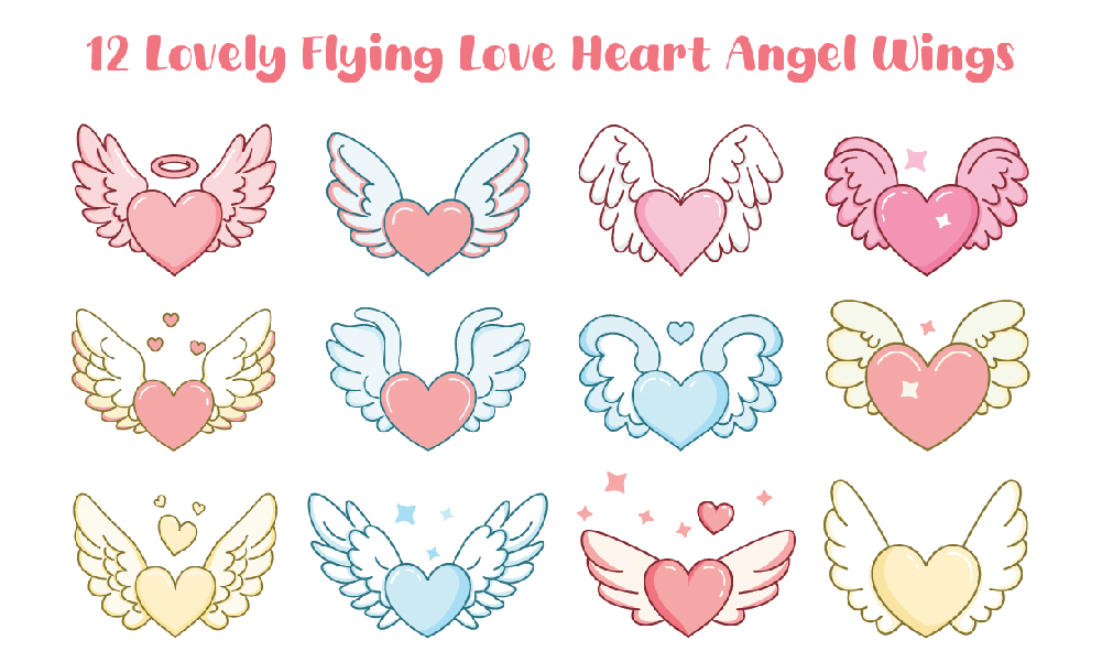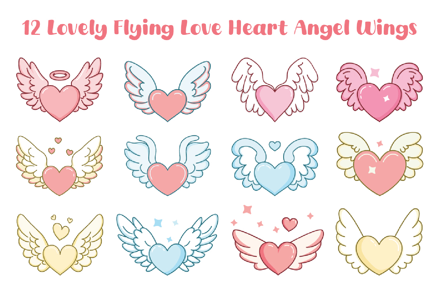 12 Lovely Flying Love Heart Angel Wings Illustration
