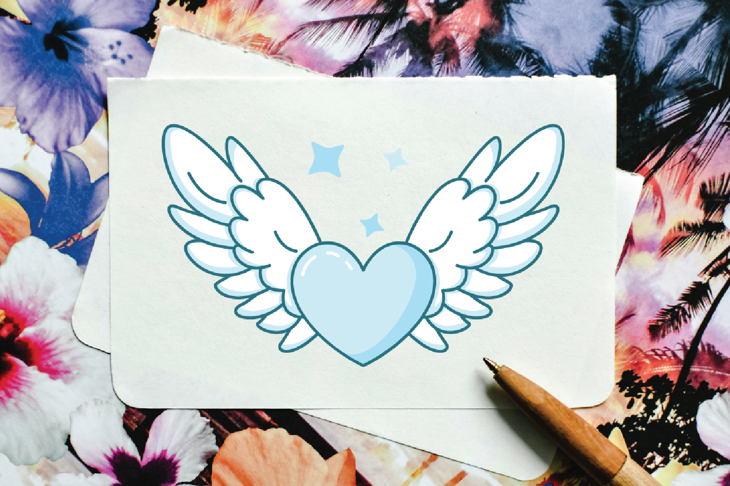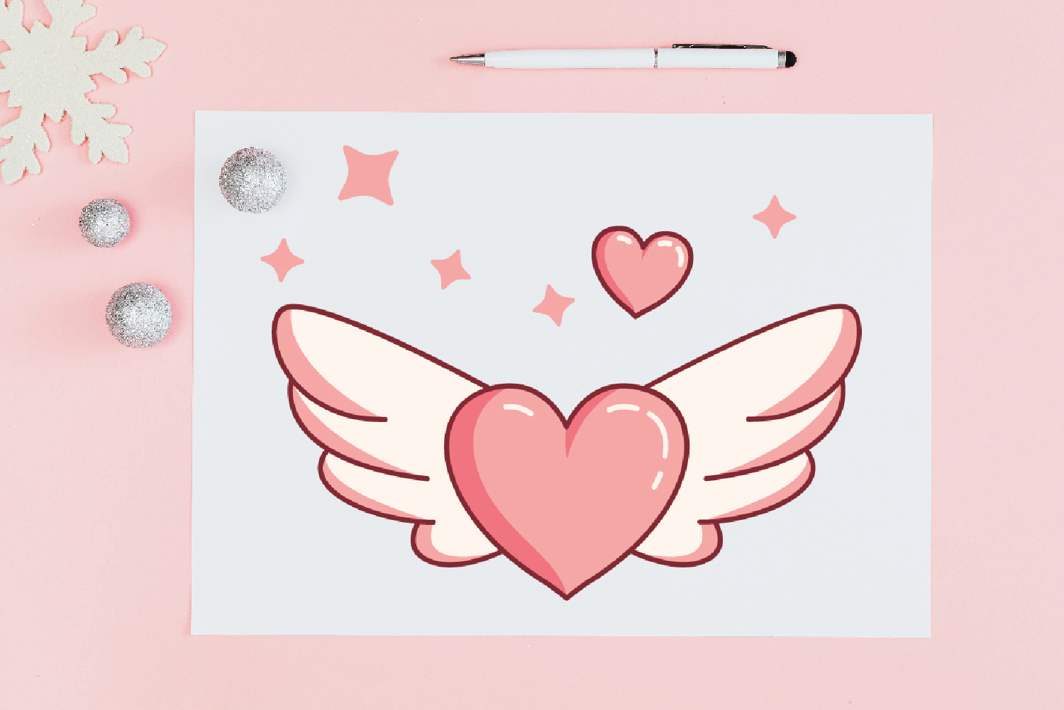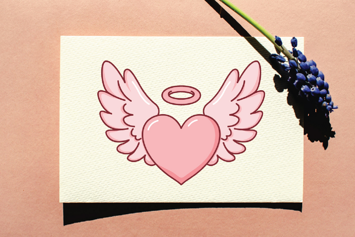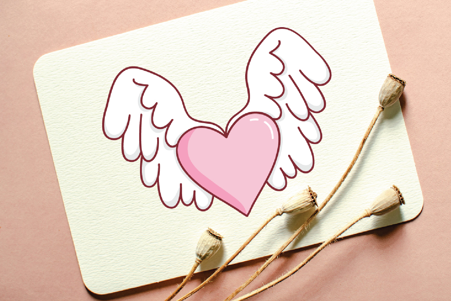 12 Lovely Flying Love Heart Angel Wings Illustration