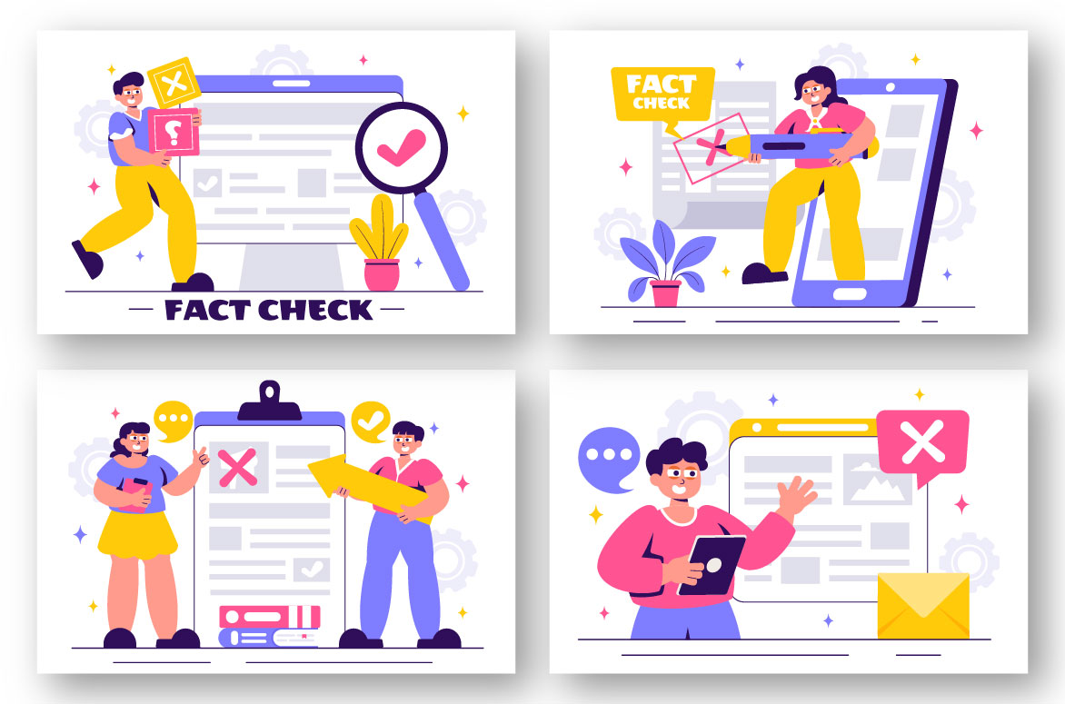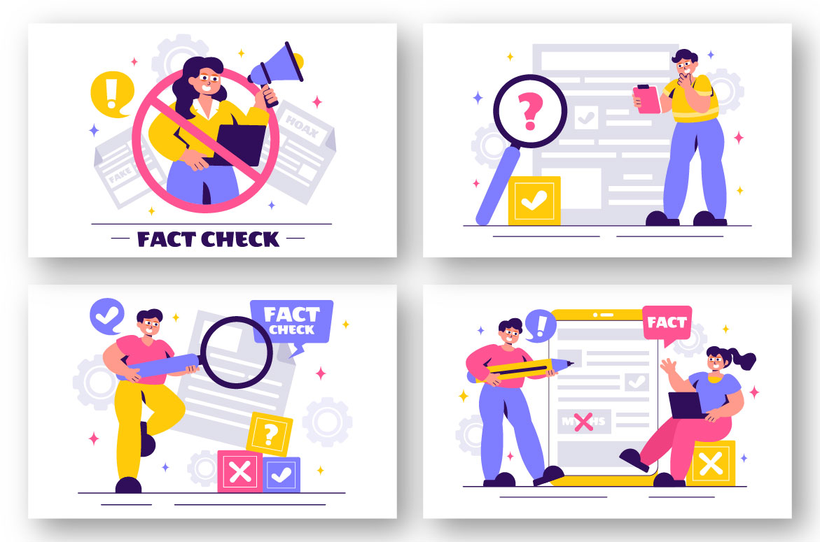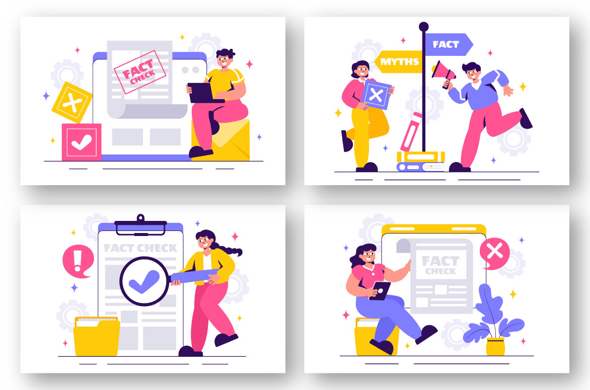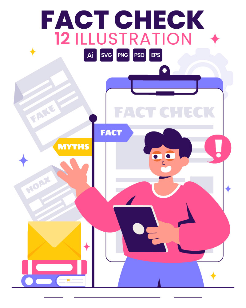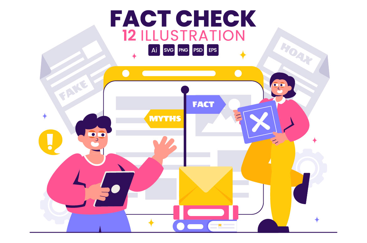 Fact or Myths Check News Vector Illustration Featuring Myths vs. Facts for Thorough Verification and Evidence Comparison in a Flat Style Background Suitable for Poster, Web Banner, Brochure, Landing Page and Others Background Template Features: