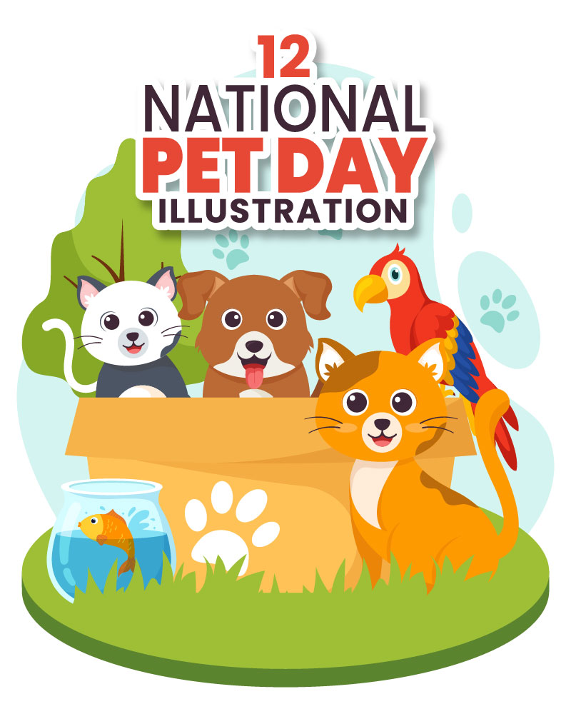 National Pet Day Vector Illustration on April 11 with Cute Pets of Cats and Dogs for Celebrate your Animal Companion in Flat Cartoon Background Suitable for Poster, Web Banner, Brochure, Landing Page and Others Background Template Features: