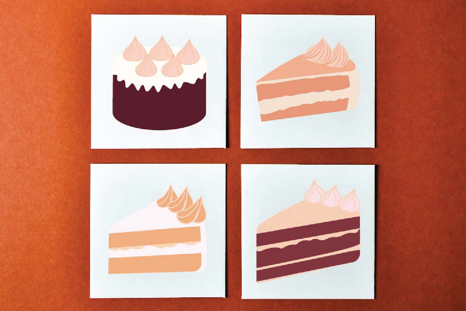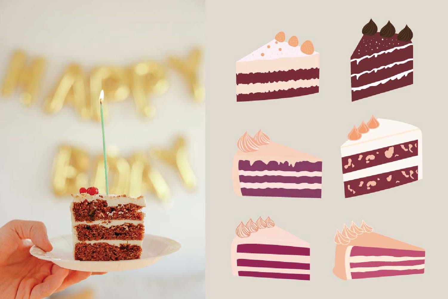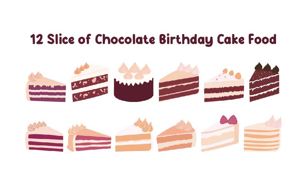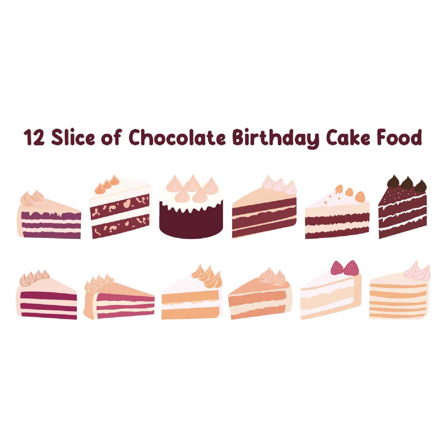 12 Slice of Chocolate Birthday Cake Food Illustration