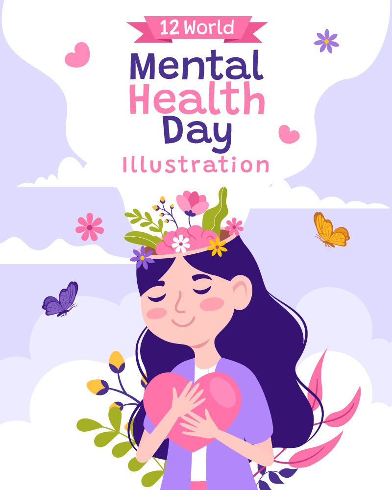 World Mental Health Day Vector Illustration on October 10 with Healthy Problem and Heart in Brain in Flat Cartoon Hand Drawn Background Templates Suitable for Poster, Web Banner, Brochure, Landing Page and Others Background Template Features: