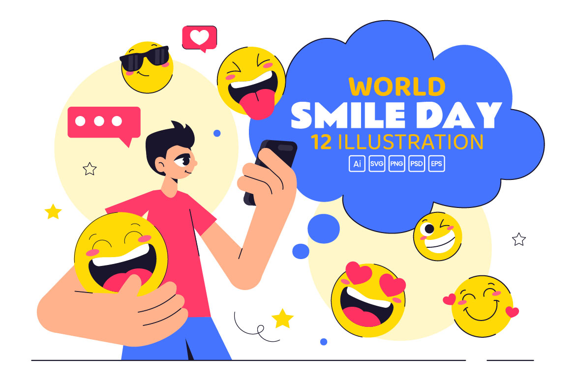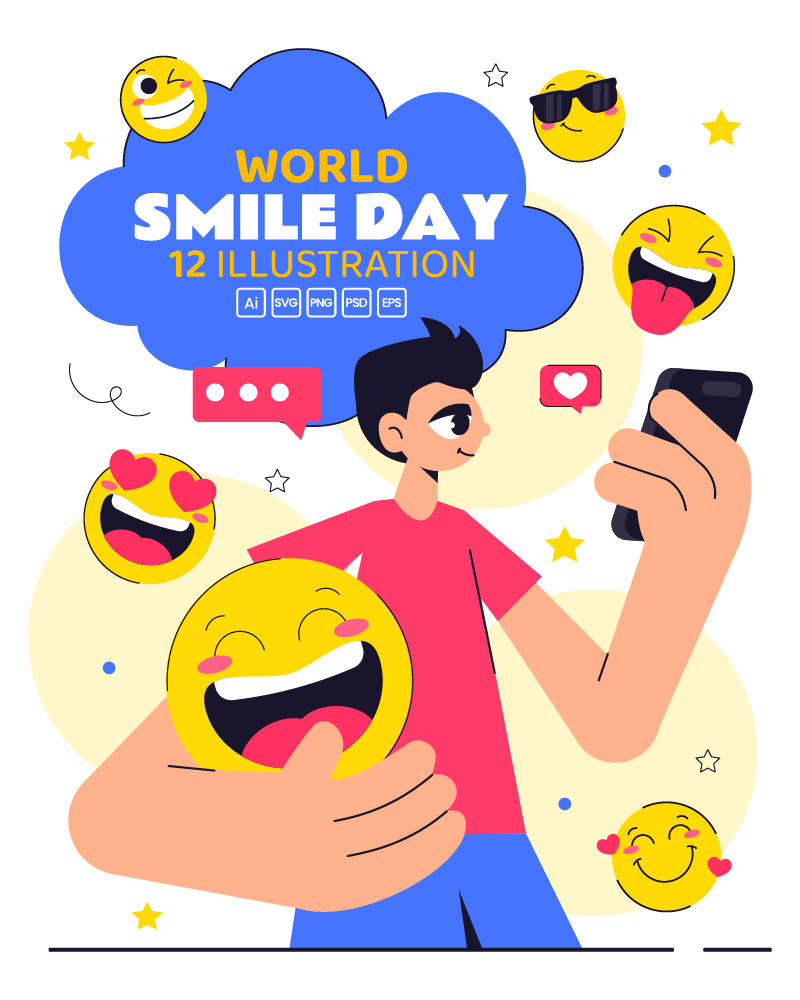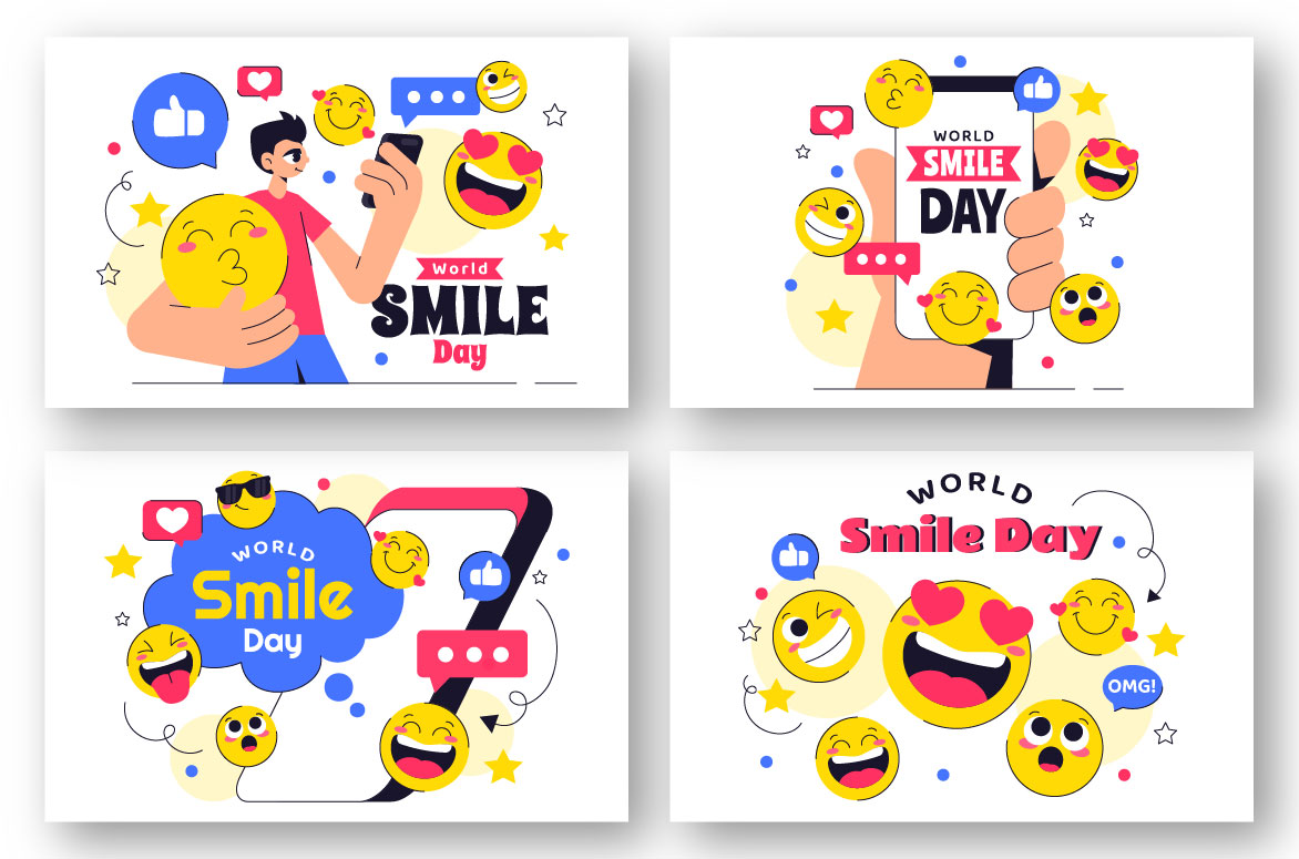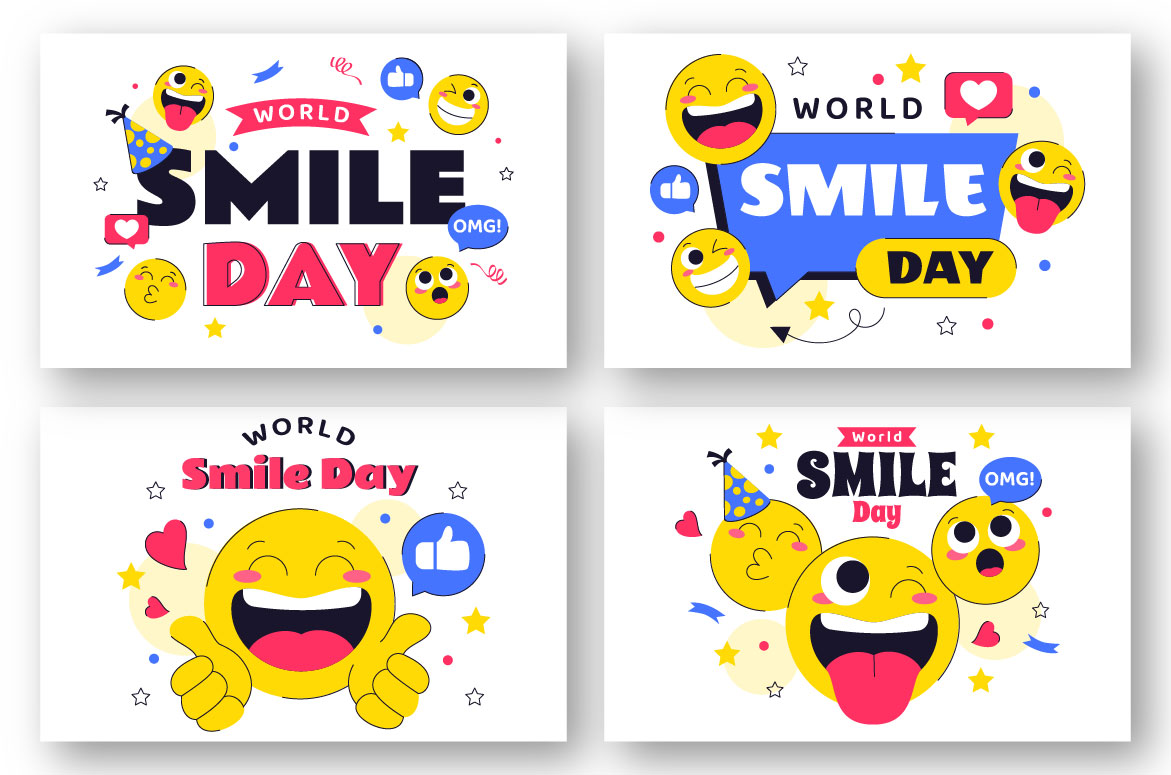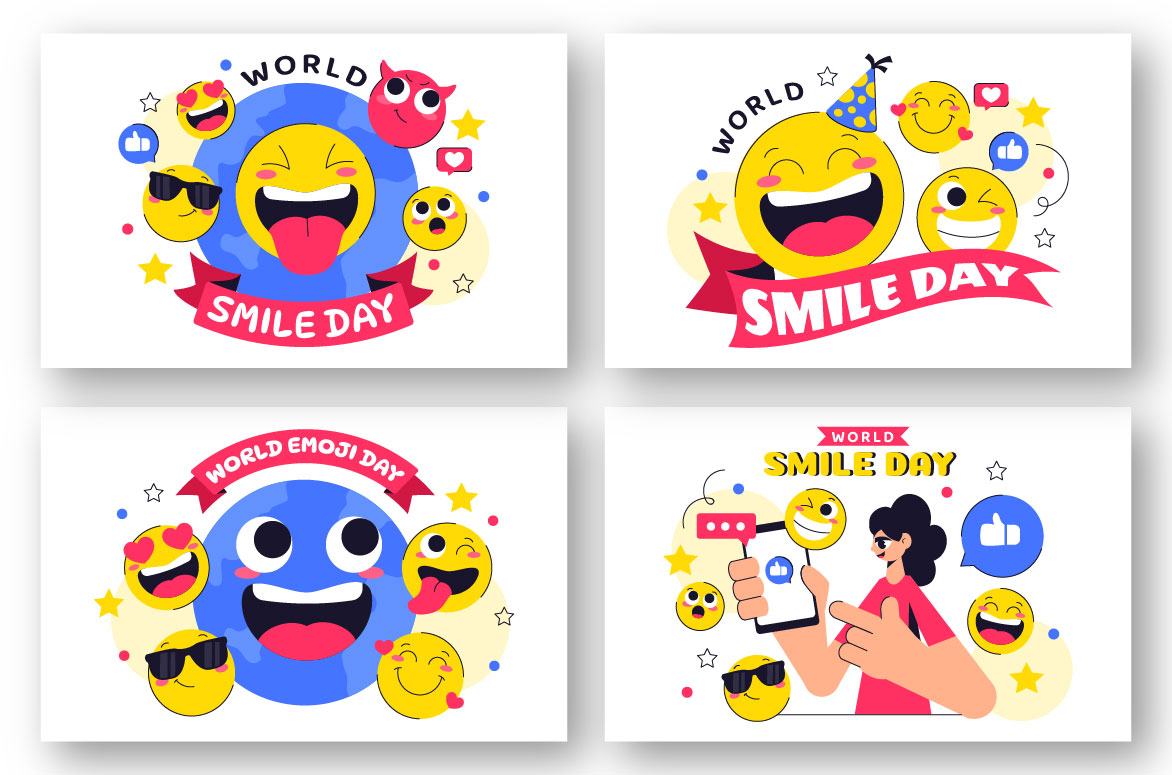 World Smile Day Celebration Vector Illustration Featuring a Smiling Icon, Joyful Emotion and Various Facial Expressions in a Cute and Cheerful Cartoon Suitable for Poster, Web Banner, Brochure, Landing Page and Others Background Template Features: