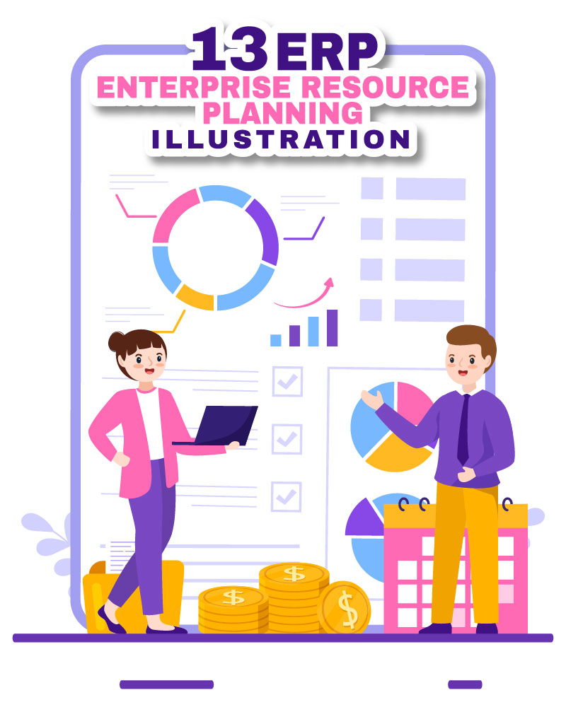 ERP Enterprise Resource Planning System Vector Illustration with Business Integration, Productivity and Company Enhancement in Hand Drawn Templates Suitable for Poster, Web Banner, Brochure, Landing Page and Others Background Template Features: