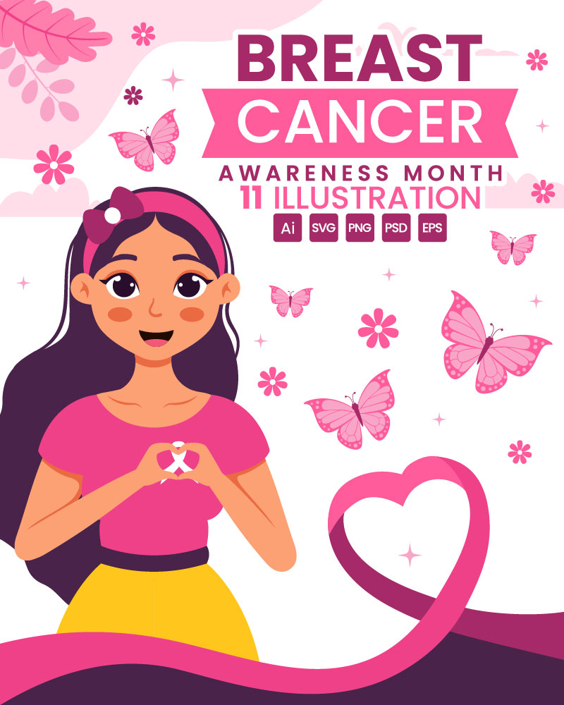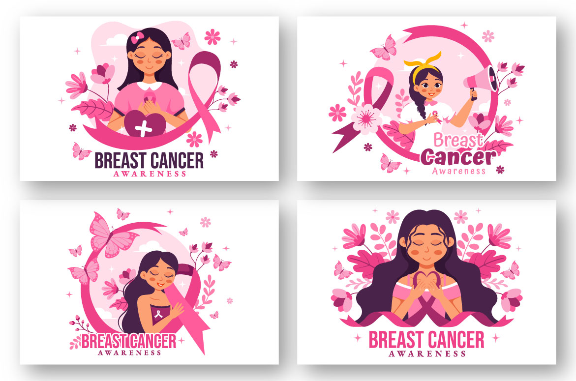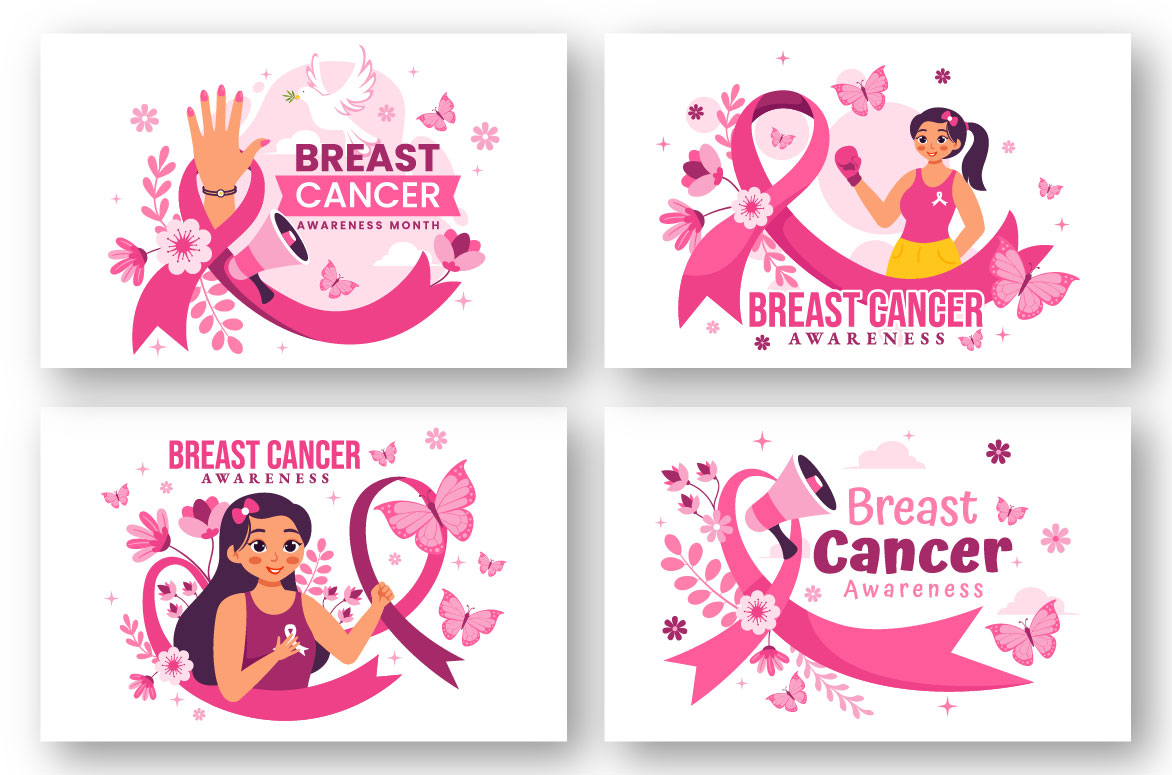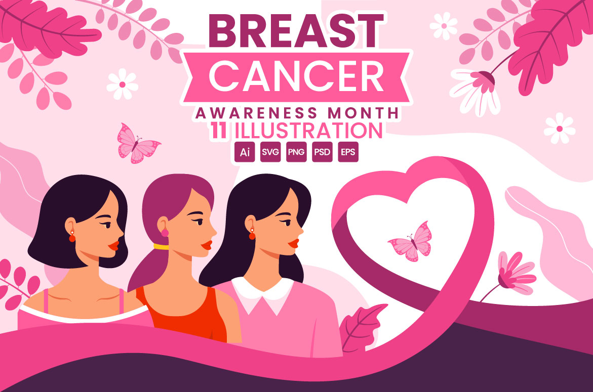 Breast Cancer Awareness Month Vector Illustration of Diverse Women with Pink Support Ribbon for Healthcare Campaign Solidarity in a Flat Background Suitable for Poster, Web Banner, Brochure, Landing Page and Others Background Template Features: