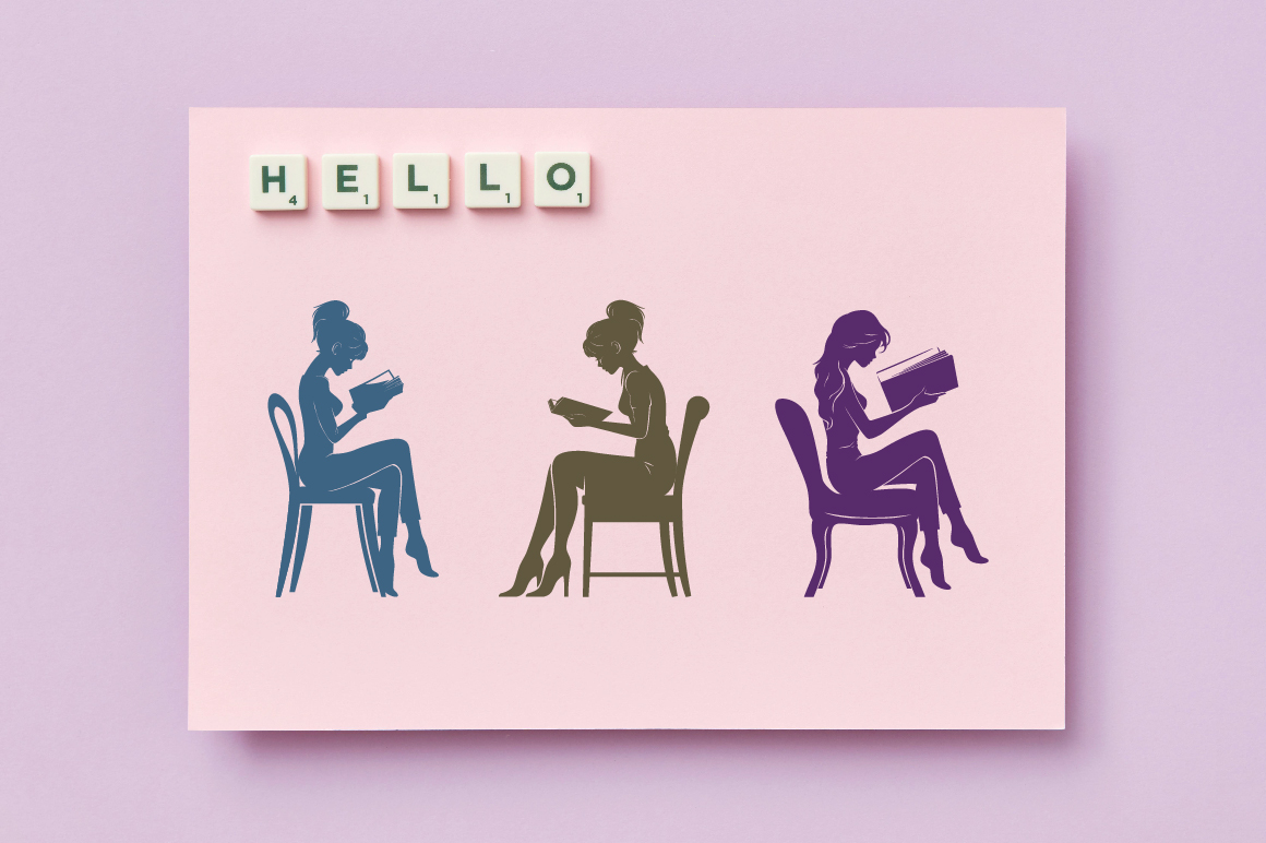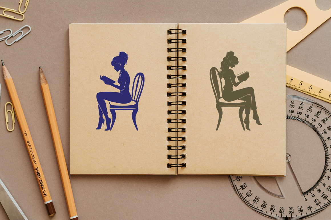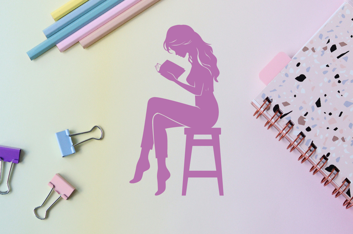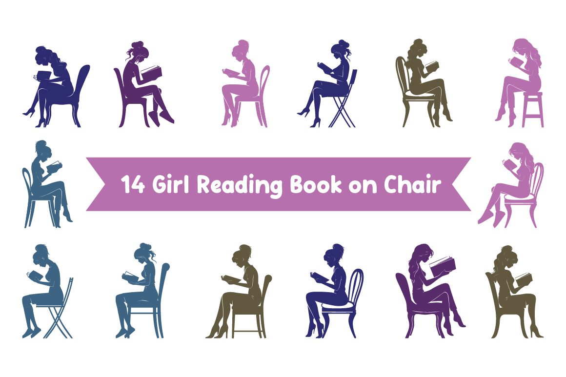 14 Girl Reading a Book on Chair Illustration