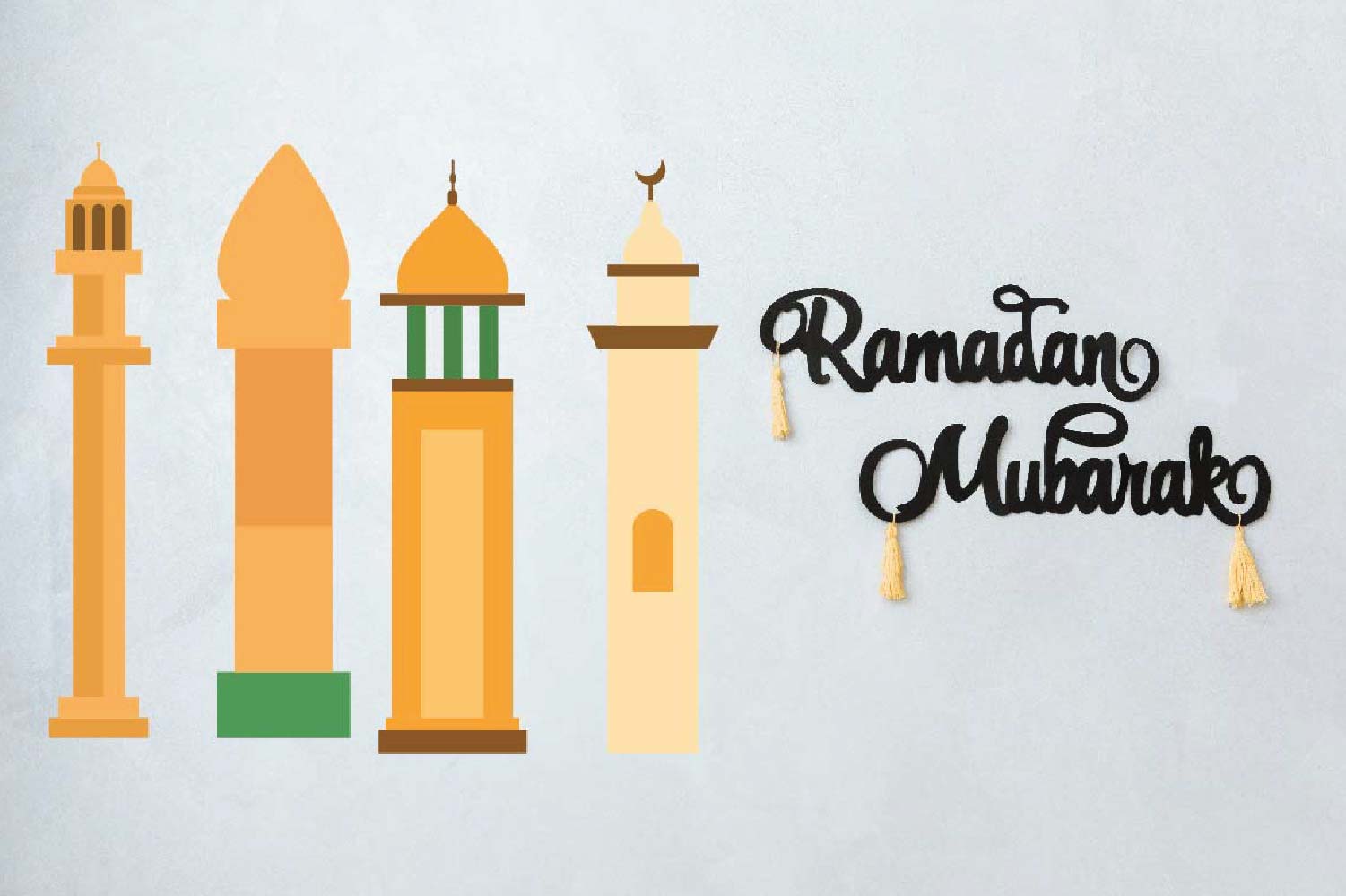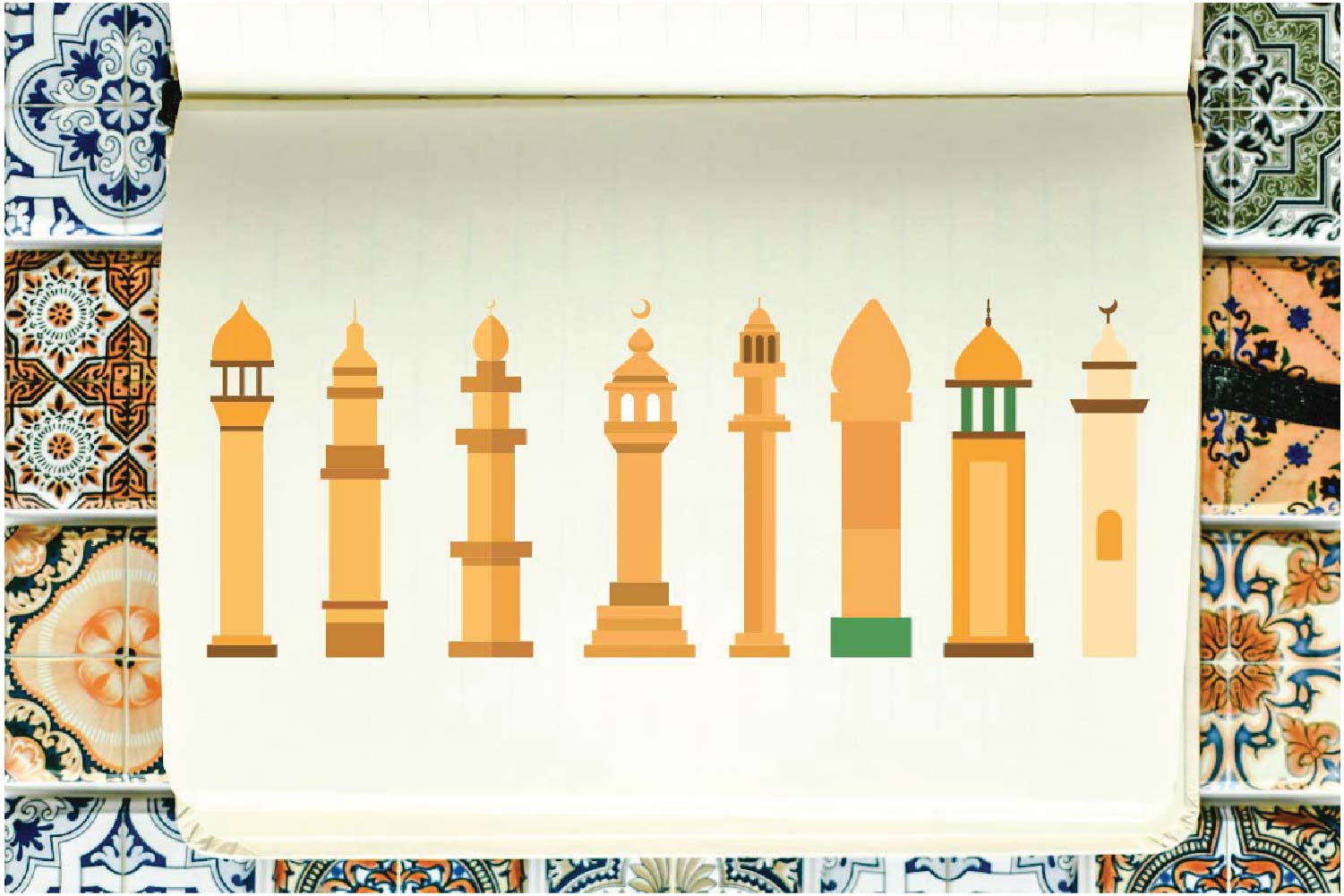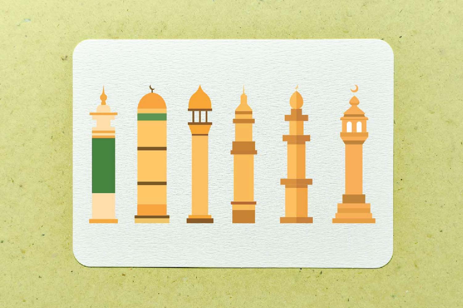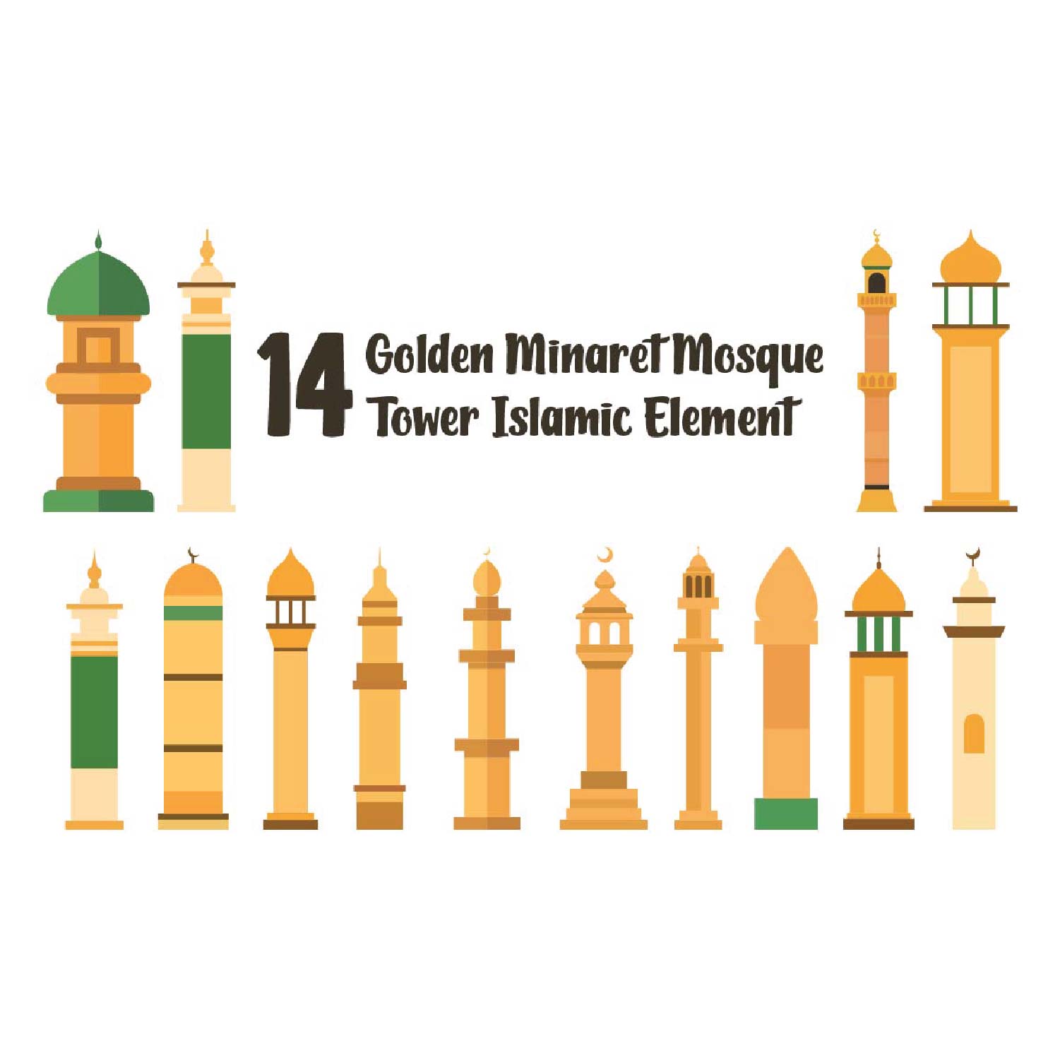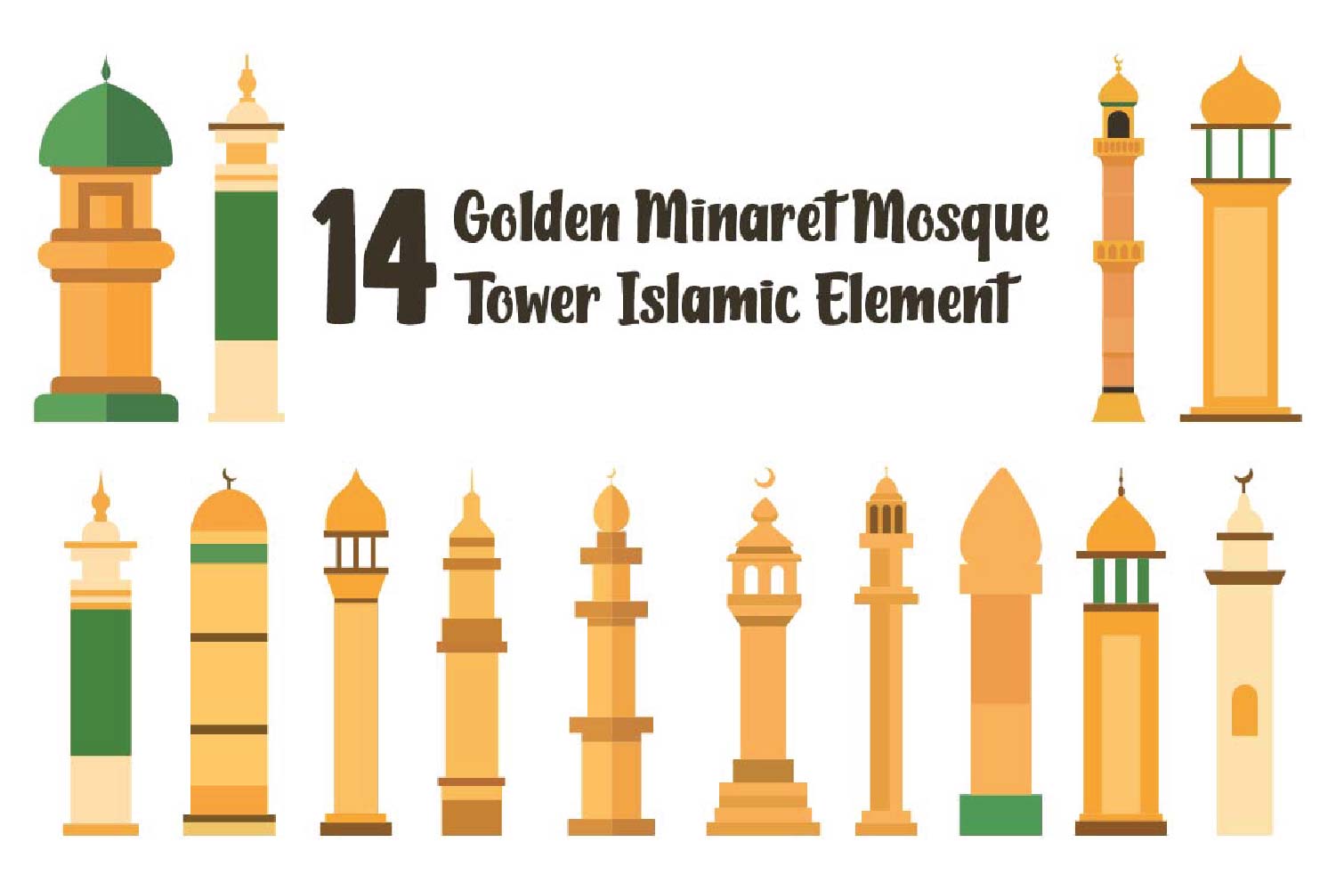 14 Golden Minaret Mosque Tower Islamic Element Illustration