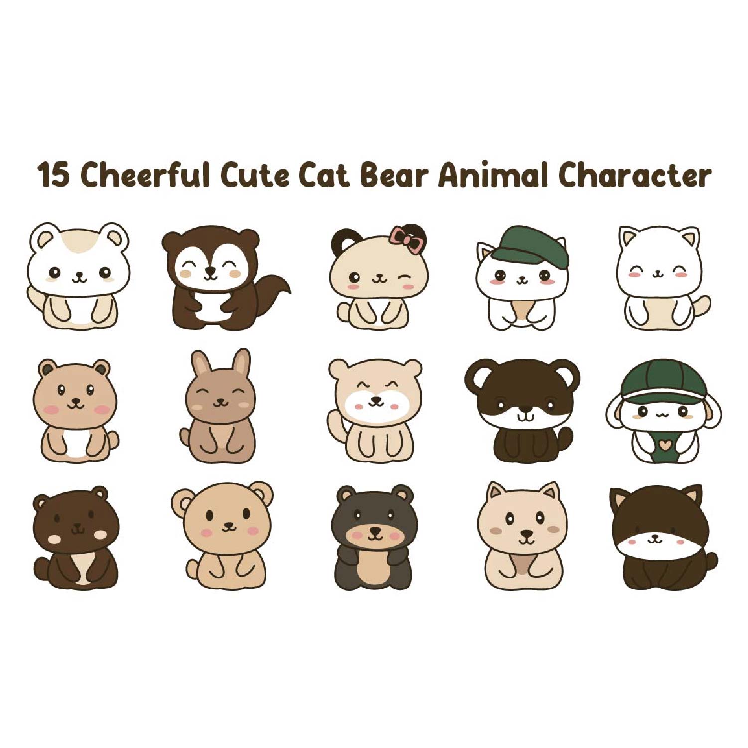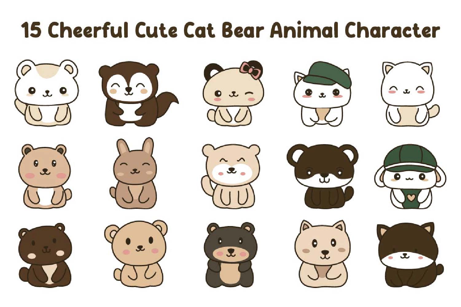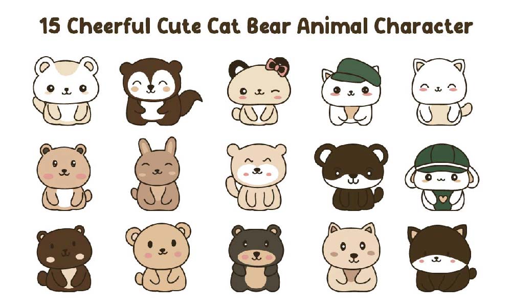 15 Cheerful Cute Cat Bear Animal Character Illustration