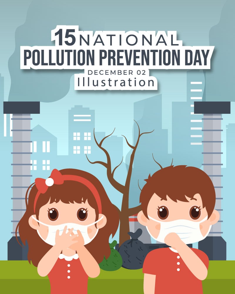 National Pollution Prevention Day for Awareness Campaign About Factory, Forest or Vehicle Problems in Template Hand Drawn Cartoon Flat Illustration Suitable for Poster, Banner, Brochure and Other Template Features: