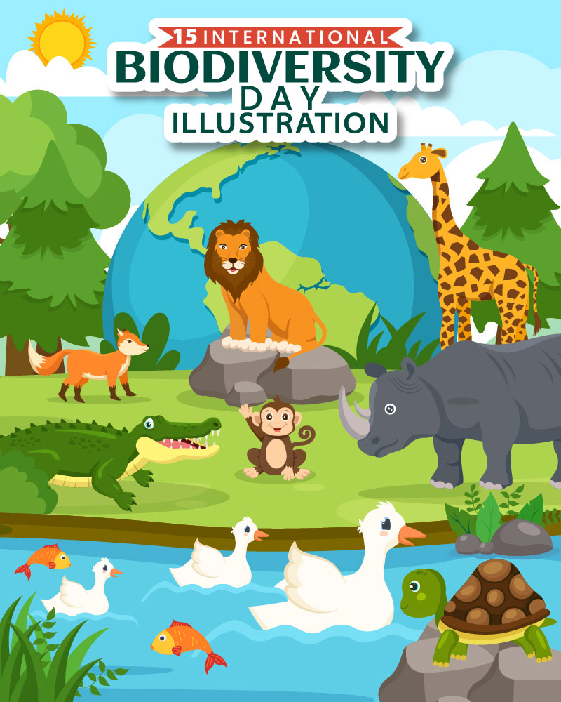 World Biodiversity Day on May 22 Illustration with Biological Diversity, Earth and Animal in Flat Cartoon Hand Drawn Templates Suitable for Poster, Web Banner, Brochure, Landing Page and Others Background Template Features: