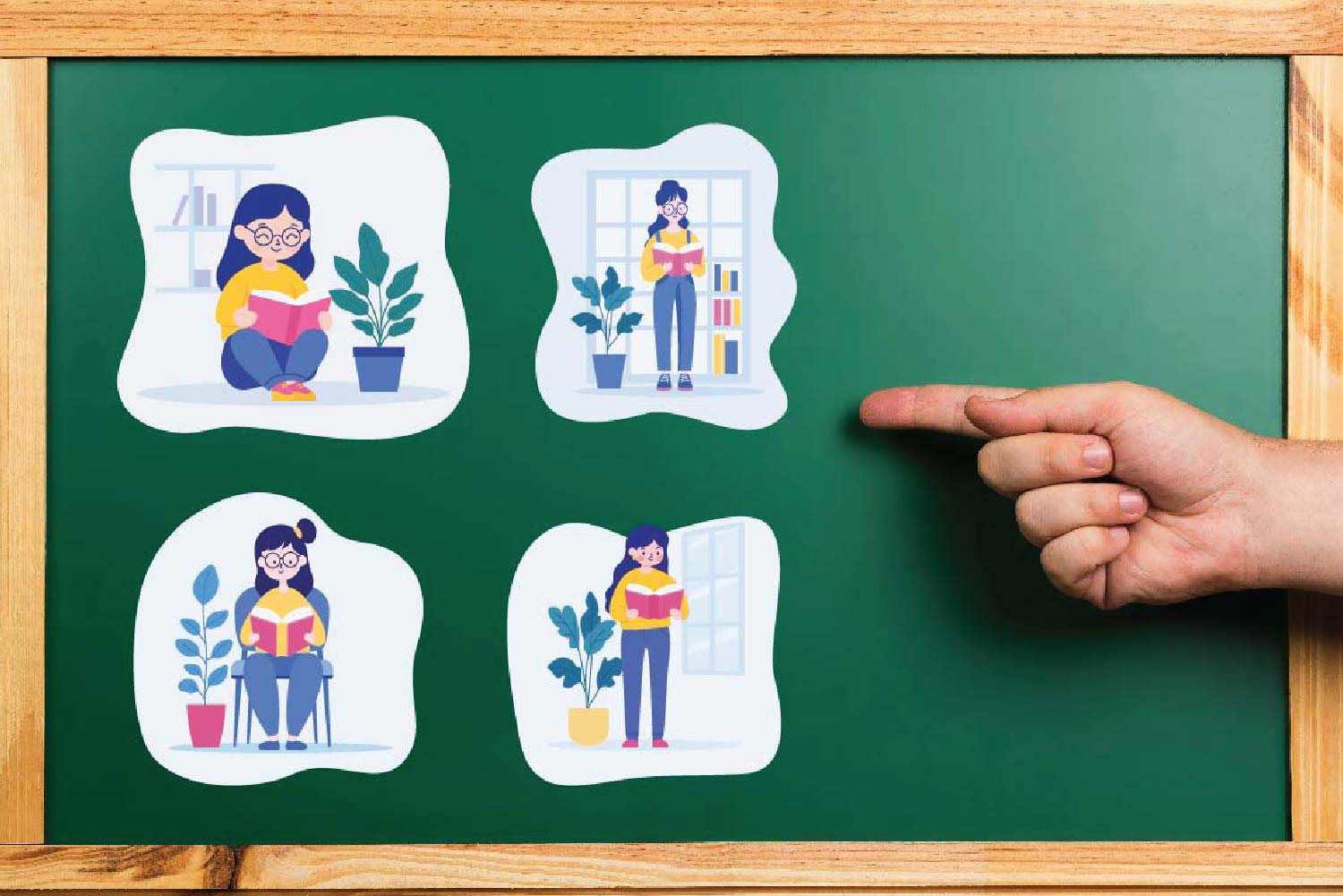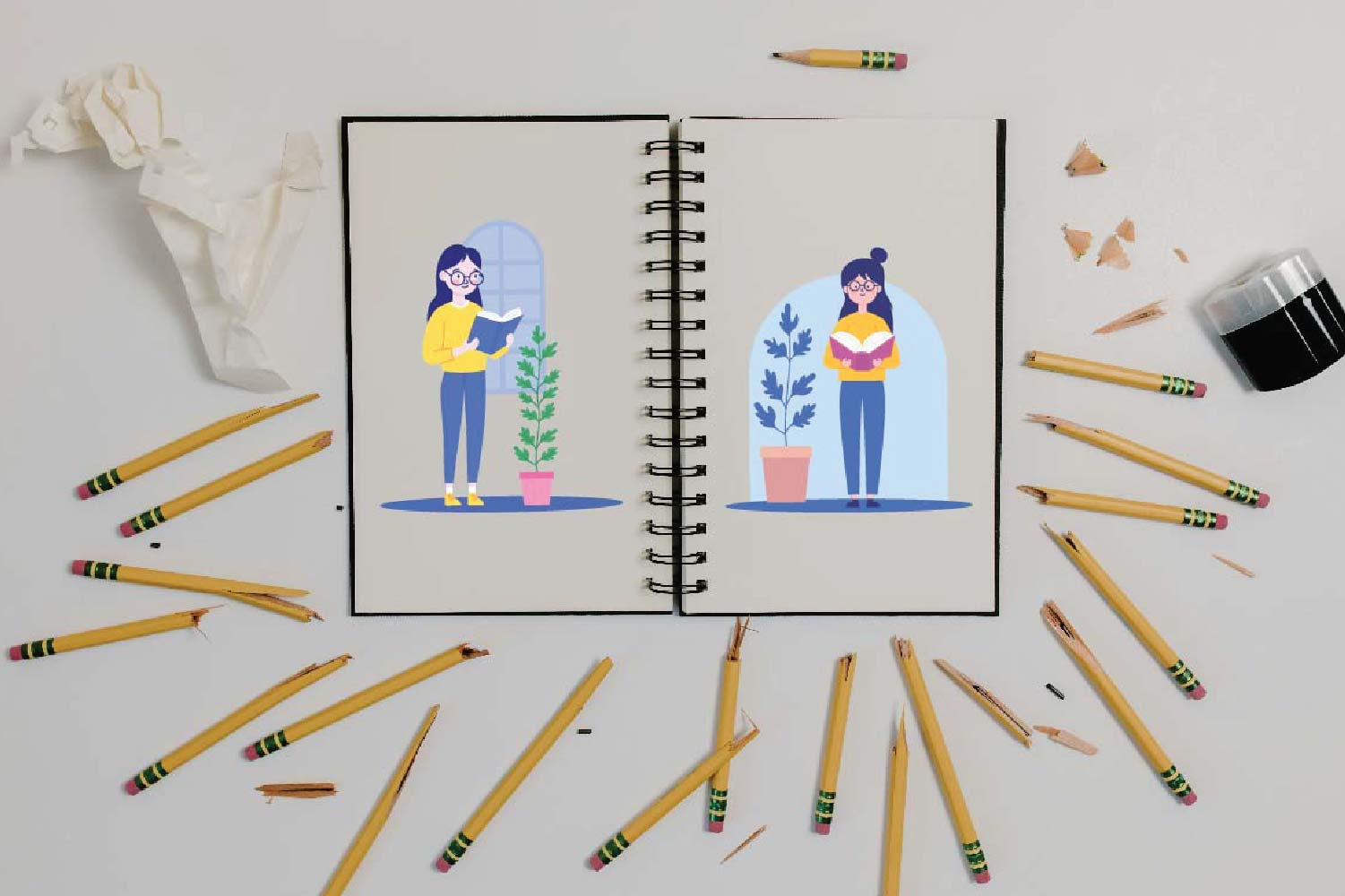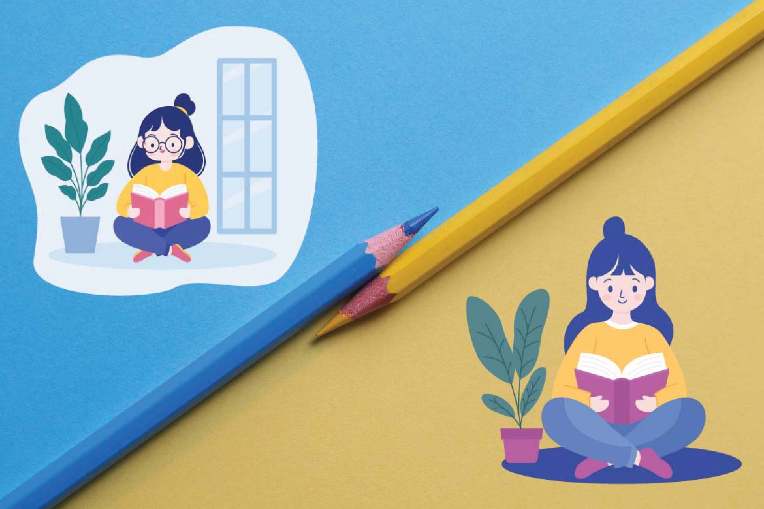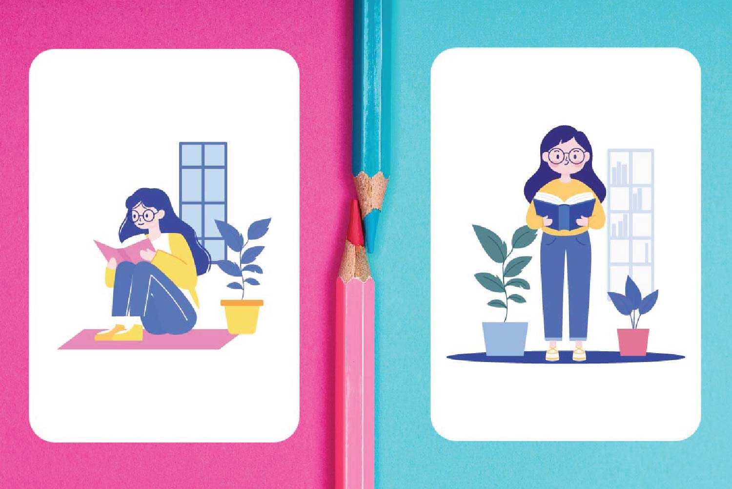 16 Pretty Nerd Girl Character Reading a Book Illustration