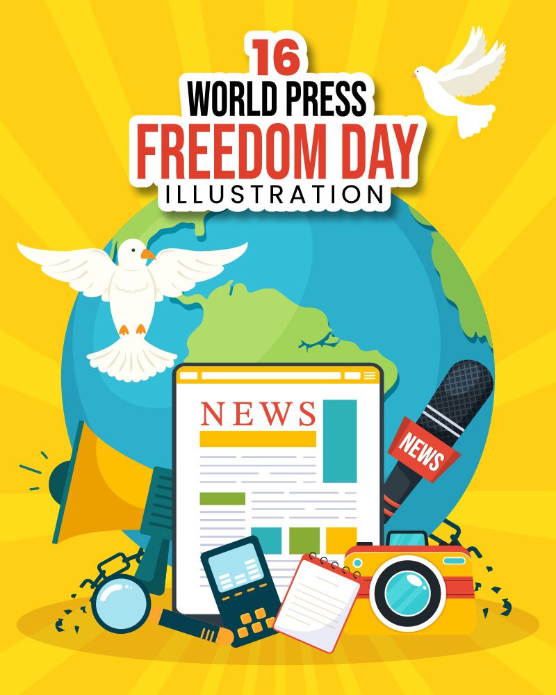 World Press Freedom Day on May 3 Illustration with Hands Holding News Microphones in Flat Cartoon Hand Drawn Templates Suitable for Poster, Book Cover, Web Banner, Brochure, Landing Page and Others Background Template Features: