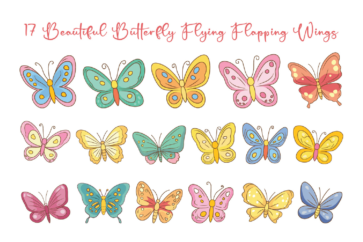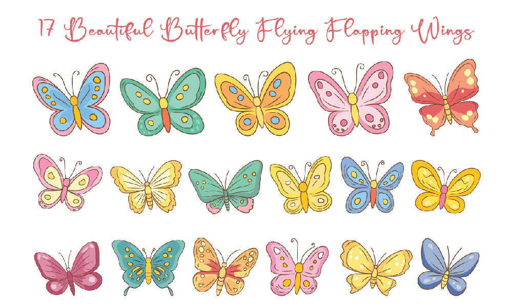 17 Beautiful Butterfly Flying Flapping Wings Illustration