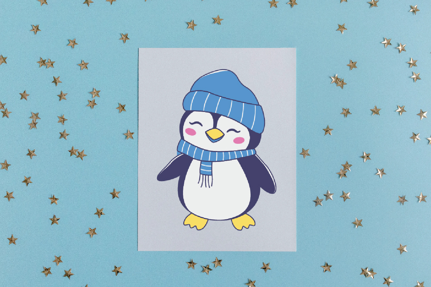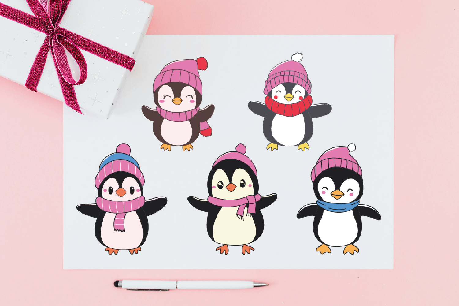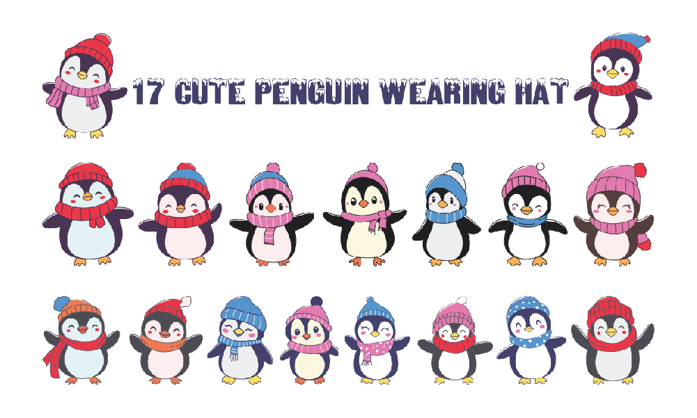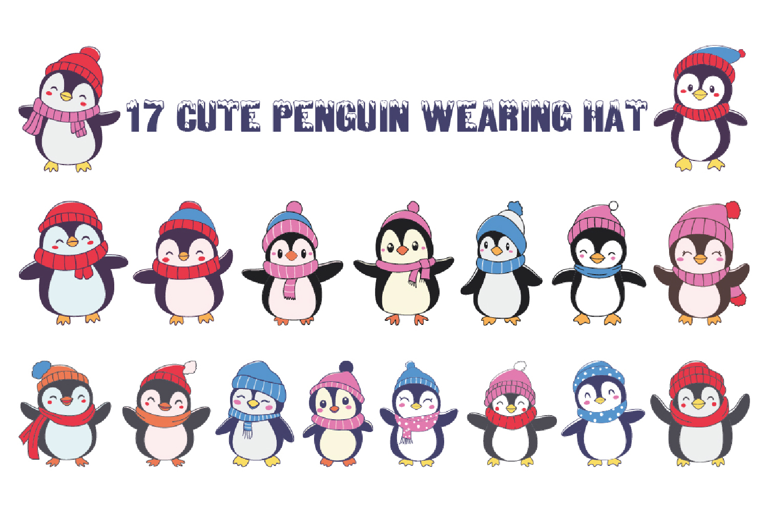 17 Cute Penguin Wearing Hat in Winter Illustration