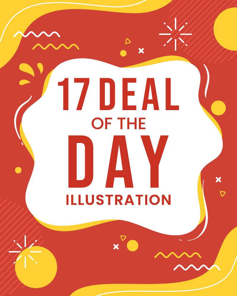 Daily Deals of The Day with Decorative Lettering Text Style for Poster, Banner, Brochure, Cover, Greeting Card, Invitation, Landing Page or Label in Flat Cartoon Hand Drawn Background Illustration Template Features: